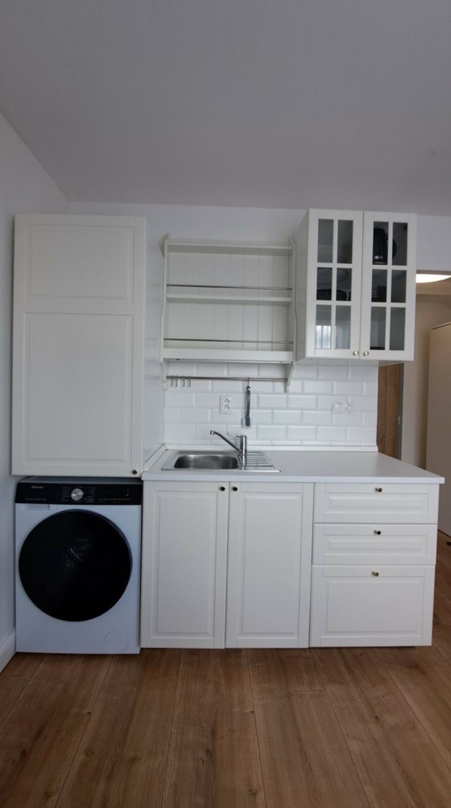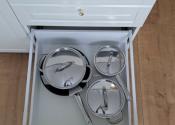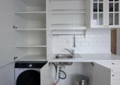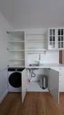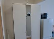 Aj napriek svojej veľkosti (16m2) je v garsónke dostatok úložného priestoru (skriňa + skrinka nad práčkou). V prípade záujmu vieme je k dispozícii aj pivnica.
