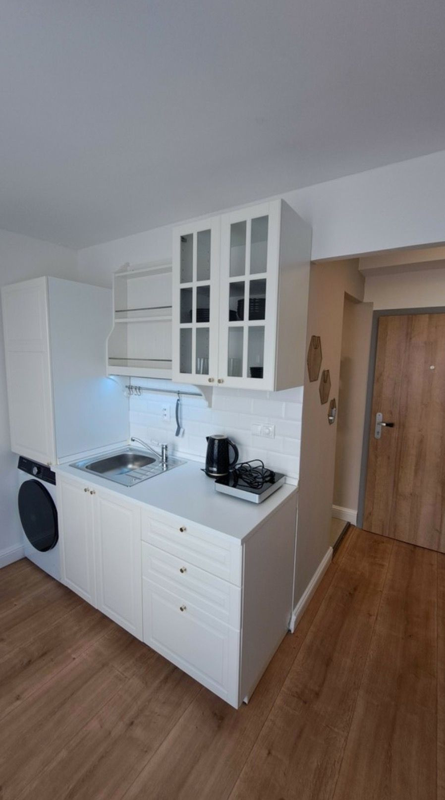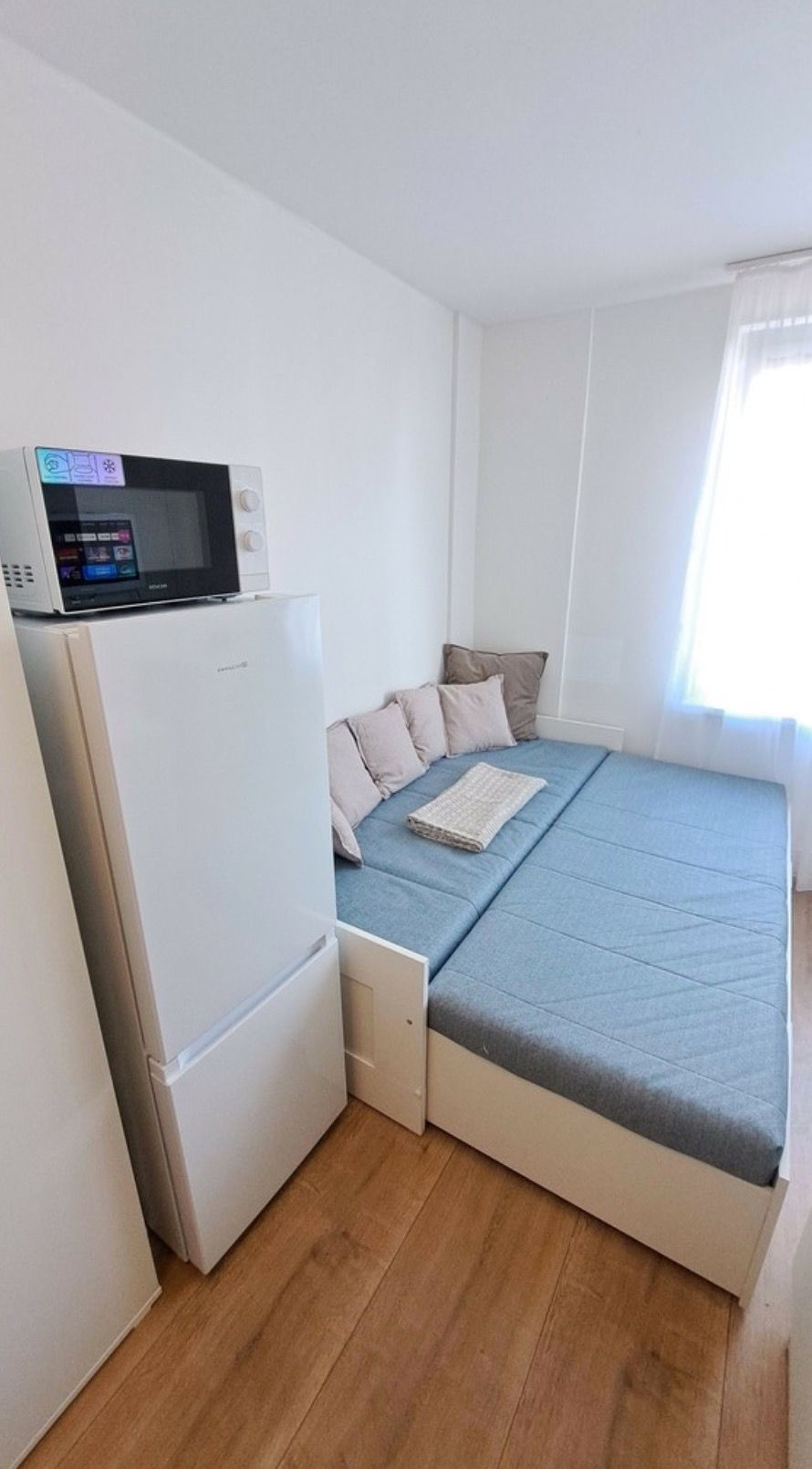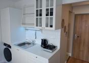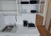 V garsónke sa nachádzajú nové zariadenia ako - tyčový vysávač, skriňa, chladnička, mikrovlnná rúra, rozkladacia posteľ s úložným priestorom, práčka so sušičkou, varná kanvica či elektrický varič.