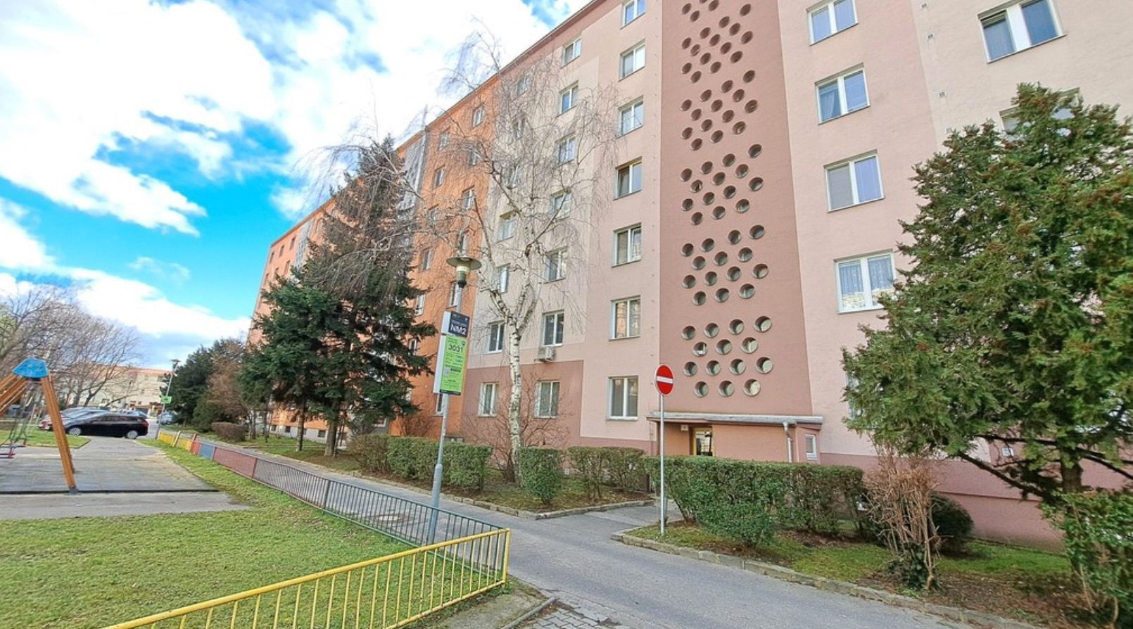 Hneď pri paneláku zastávka MHD - autobusy 50, 98, 151.