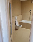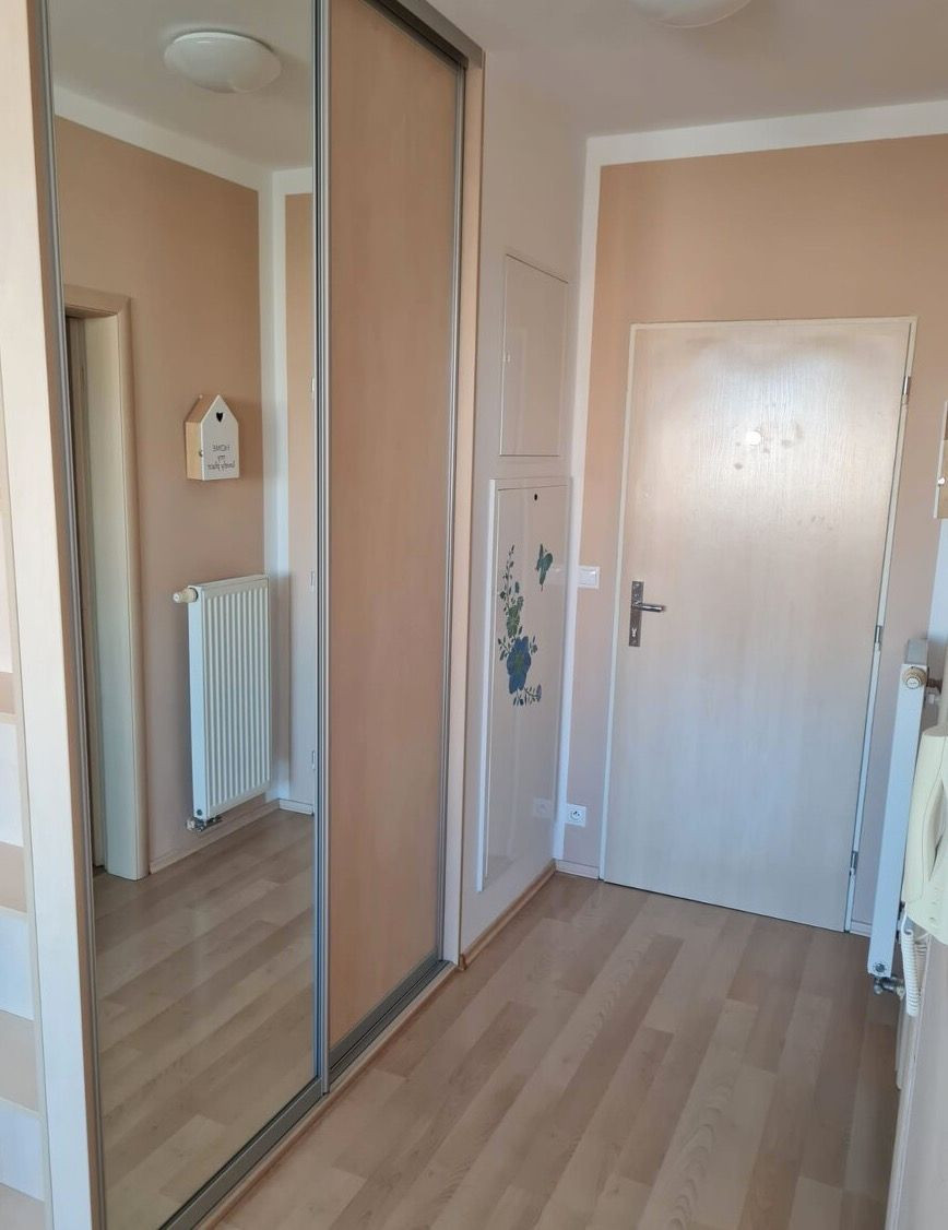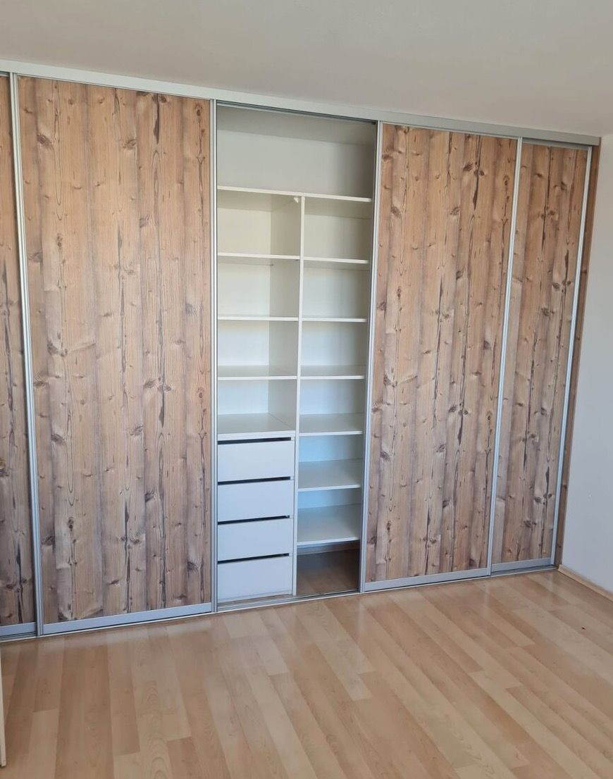 Ďalej sú súčasťou bytu vstavané rolldor skrine v izbe a chodbe, obývačková stena, nástenný držiak na TV, úložné skrinky a práčka v kúpelni a jedálenský stôl so stoličkami, posteľ s matracom.