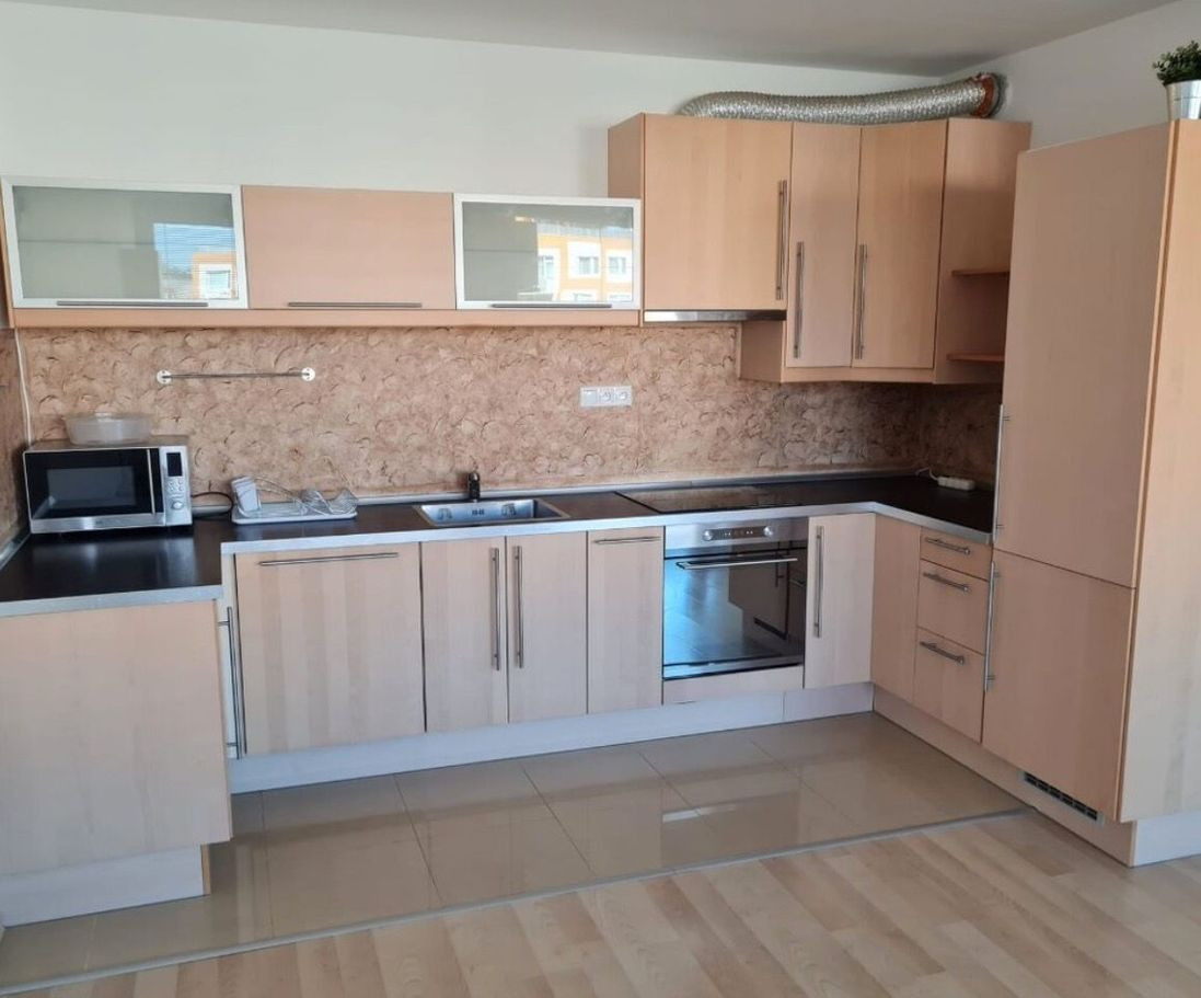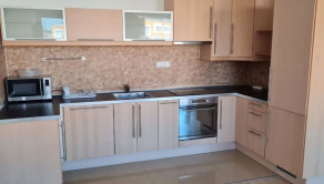 Súčasťou bytu je kuchynská linka so vstavanými spotrebičmi (umývačka riadu, chladnička s mrazničkou, rúra, sklokeramická varná doska) a mikrovlnkou.