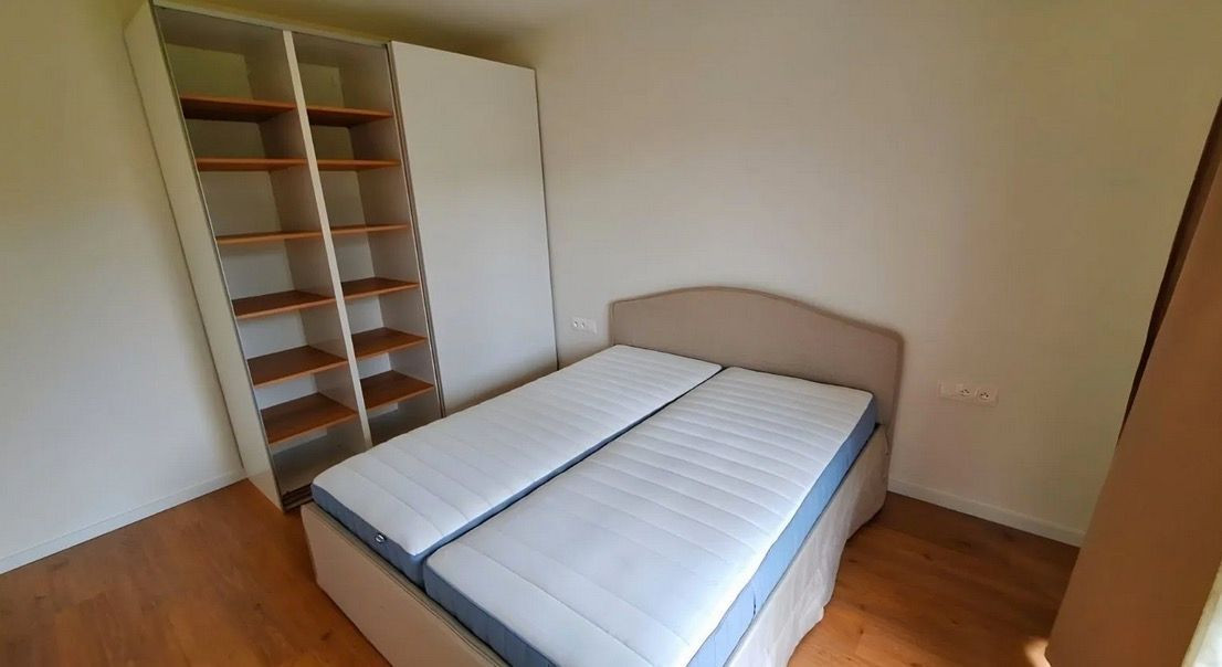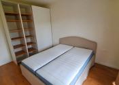 manželská posteľ s dvomi samostatnými matracmi, skriňa, zatemnovacie závesy