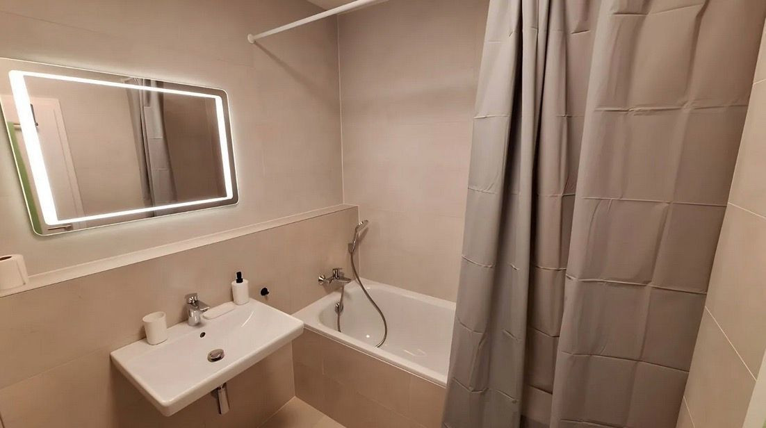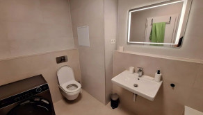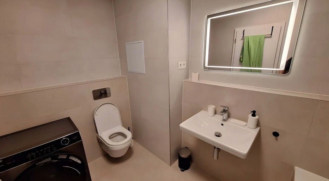 vybavená kúpeľna s protizahmlievacím zrkadlom + práčka so sušičkou