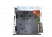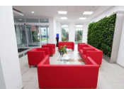 VYBAVENIE BUDOVY: plne klimatizované priestory, každá miestnosť samostatne regulovateľná, otvárateľné okná, kuchynka s vybavením na každom poschodí (umývačka, mikrovlnná rúra, rychlov.kanvica, stoly, stoličky, kuchynské linka), bicyklové interiérové aj exteriérové stojiská zabezpečené a strážené kamerovým systémom, sprchy, fitness, relax zóny – interiér ( biliard, stolný futbal, stolný tenis) aj exteriér, štruktúrovaná kabeláž (LAN) s možnosťou umiestnenia sieťových prvkov v serverovni, optické dátové pripojenie, možnosť zriadenia virtuálneho sídla pre ďalšie spoločnosti, fotoateliér, dieselagregát- záložný zdroj.