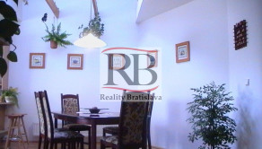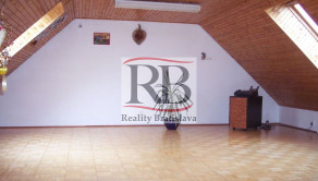 DISPOZÍCIE: 1/ pivnica s kotolňou a skladovými priestormi, 2/ prízemie sa skladá: zádverie a chodba, schody do pivnice a schody do obytného podkrovia, predizbová časť rozdelená na veľkú obývačku so samostatným vstupom na terasu do záhrady a veľká kuchyňa s jedálňou a oddychovou časťou, hosťovské WC, práčovňa, kúpeľňa s vaňou, sprchovým kútom a samostatným WC, spálňa, detská izba a pracovňa a samostatný šatník.