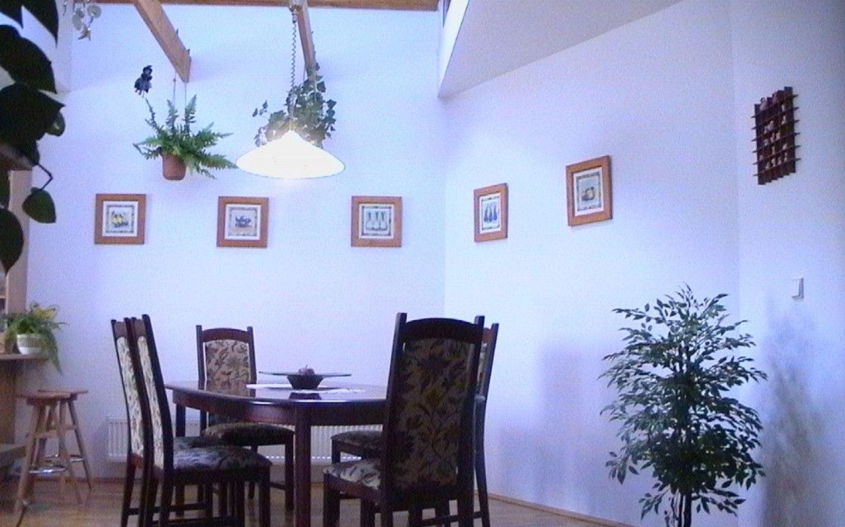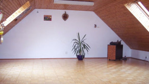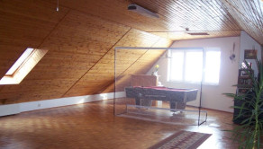 DISPOZÍCIE: 1/ pivnica s kotolňou a skladovými priestormi, 2/ prízemie sa skladá: zádverie a chodba, schody do pivnice a schody do obytného podkrovia, predizbová časť rozdelená na veľkú obývačku so samostatným vstupom na terasu do záhrady a veľká kuchyňa s jedálňou a oddychovou časťou, hosťovské WC, práčovňa, kúpeľňa s vaňou, sprchovým kútom a samostatným WC, spálňa, detská izba a pracovňa a samostatný šatník.