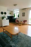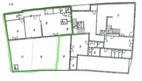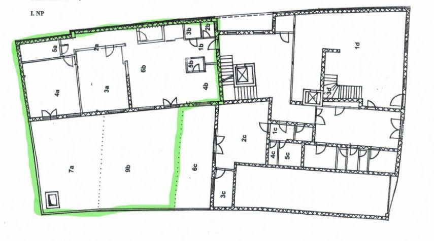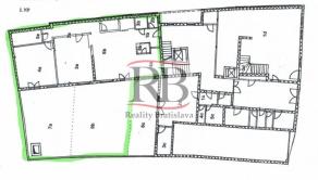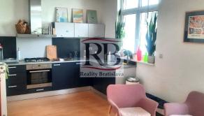 Byt s rozlohou 140m2 ma dve samostatné veľké miestnosti, tretiu s kuchyňou, malé skladové priestory a 3 kúpeľne (1. so sprchovacím kútom a umývadlom, 2. s toaletou, umývadlom a je tam aj kotol a 3. so sprchou, umývadlom, toaletou a práčkou). K bytu prislúcha zelený súkromný dvor s výmerou 123,5m2. Byt slúžil ako sídlo firmy. Je možné ho prenajať na administratívne účely ale aj na bývanie. Prenajíma sa nezariadený.