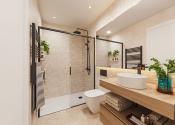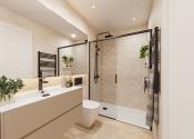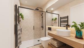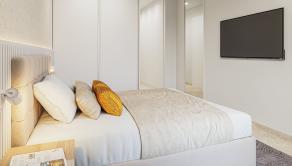 Vo vnútri týchto moderných bytov máte k dispozícii dvoj alebo trojlôžkové spálne so vstavanými skriňami v závislosti od modelu, hlavné spálne majú vlastnú kúpeľňu so sprchovacím kútom, všetky majú druhú kúpeľňu, ktorá má tiež sprchovací kút, priestrannú otvorenú kuchyňu a jedáleň a veľký obývací priestor.