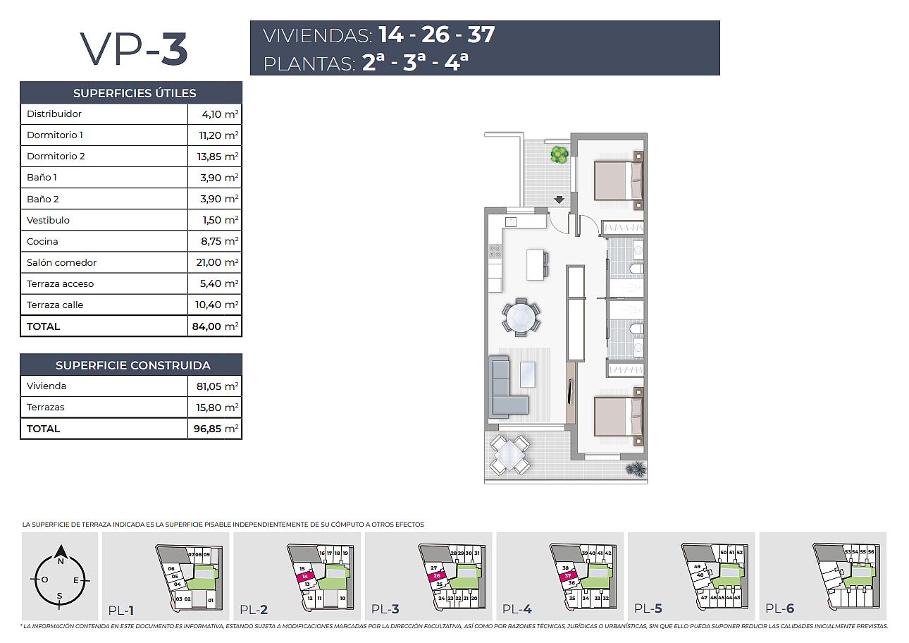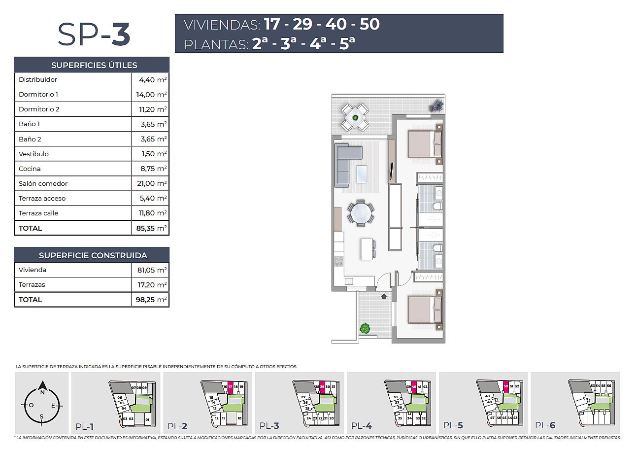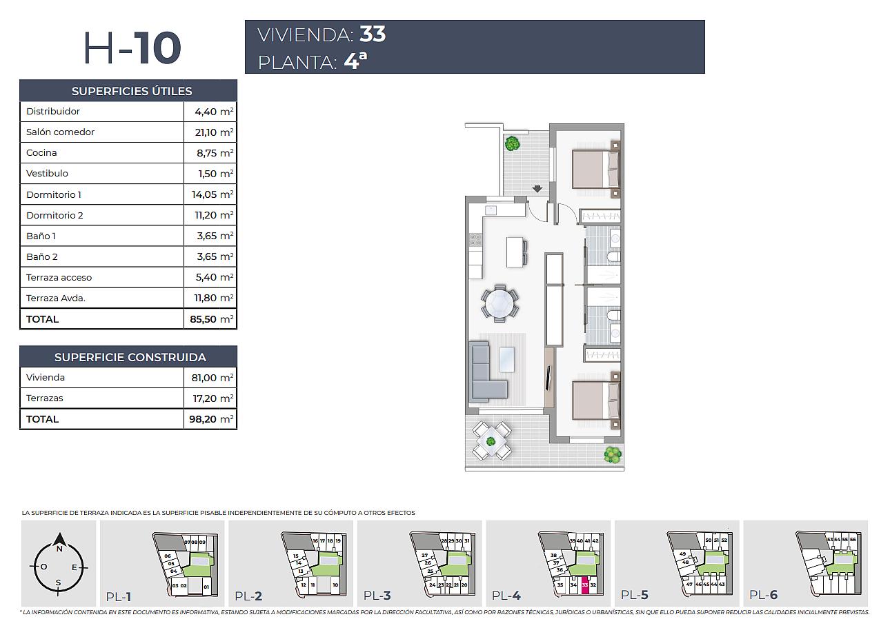 Byty v meste Torrevieja sa nachádzajú v pešej vzdialenosti od občianskej vybavenosti a od pláže, 2,3 km od obľúbeného otvoreného nákupného centra Habaneras, 9 km od La Zenia a jeho známeho nákupného centra La Zenia Boulevard, 14 km od  18-jamkového golfového ihriska La Marquesa a len 44 km od medzinárodného letiska Alicante.