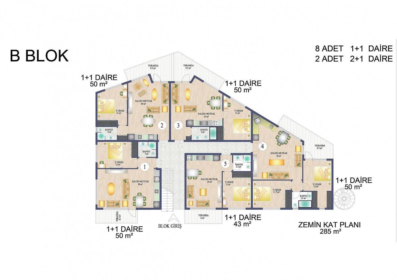 Obytný komplex pozostávajúci z 2 blokov má suterénne podlažie s parkovacími miestami. V spoločnej záhrade tu nájdete bazén a detské ihrisko. Záhrada je prístupná cez bránu s bezpečnostnou závorou. Byty s výhľadom na more a polohorský výhľad majú oddelené terasy na strechách. Bloky ponúkajú možnosti typu 1+1, 2+1 a 2+1 mezonetových bytov.