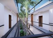 Komplex, v ktorom sa nachádzajú apartmány, pozostáva z dvojposchodových blokov. V spoločnej záhrade komplexu sa nachádzajú športové plochy, spoločný bazén a spoločenské priestory, ako napríklad kaviareň. Komplex, ktorý má nepretržite zabezpečený vstup, má pre každý apartmán vyhradené parkovacie miesta. V upravených záhradných apartmánoch sa nachádza priestor na využívanie záhrady pre prízemné podlažia. Všetky byty v blokoch, v ktorých sa nachádzajú štúdiá a byty typu loft, majú otvorenú kuchyňu. V podkrovných apartmánoch sa priestor na spanie nachádza na medziposchodí a v prípade potreby sa dá po výstavbe uzavrieť a premeniť na 1+1.