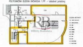 Ponúkame na prenájom skladový priestor v suteréne administratívnej budovy na Račianskej ulici v Novom Meste – Bratislava 3, neďaleko OD Slimák alebo Figara. V celej budove sú použité kvalitné materiály. Všetky priestory sú vybavené PC štruktúrovanou kabelážou, klimatizáciou, s vlastnými meradlami el. energie, vstup čipovými kartami. Objekt je zabezpečený vlastným bezpečnostným systémom, a tiež každý priestor je vybavený vlastným alarmom, DSS linky a aj možnosť napojenia na optický kábel v budove.