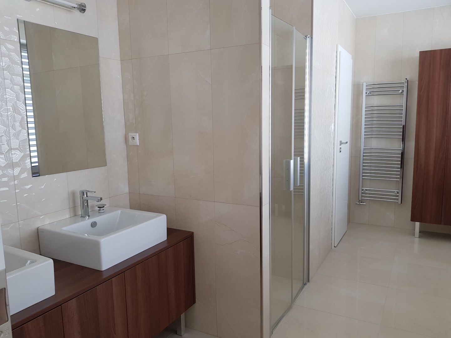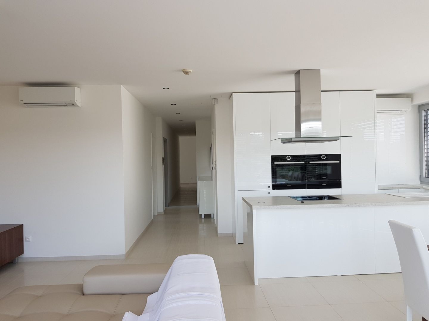 Súčasťou vybavenia bytu sú klimatizácia, podlahové kúrenie, vstavané skrine a hliníkové okná s externými žalúziami.