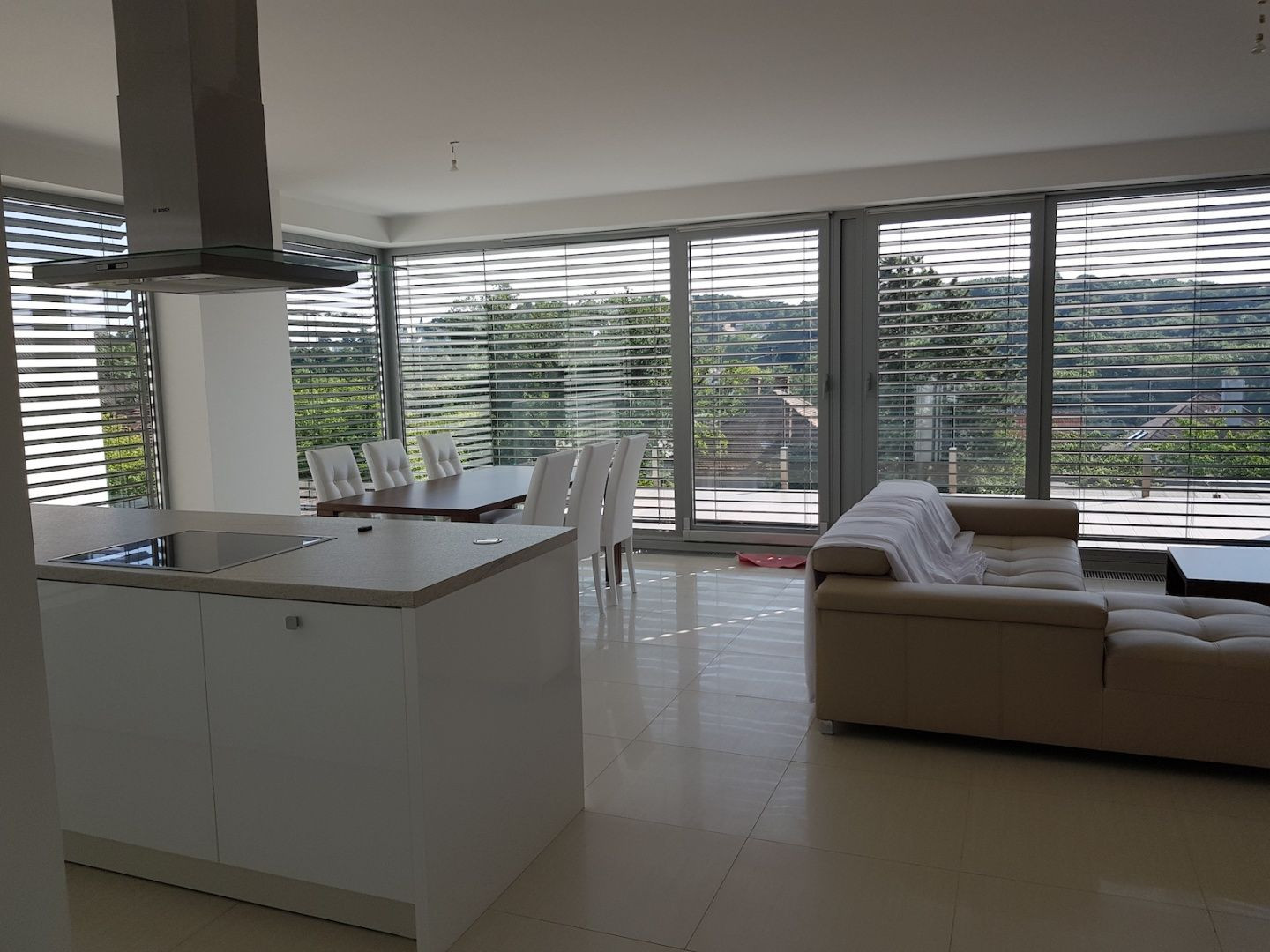 Byt sa ponúka čiastočne zariadený (možnosť dozariadiť) a pozostáva z otvorenej dispozície kuchyne so všetkými zabudovanými spotrebičmi, z jedálenskej a obývacej časti, ďalších štyroch izieb, samostatného šatníka, dvoch kúpeľní s toaletami, z jednej samostatnej kúpeľne a samostatného WC.