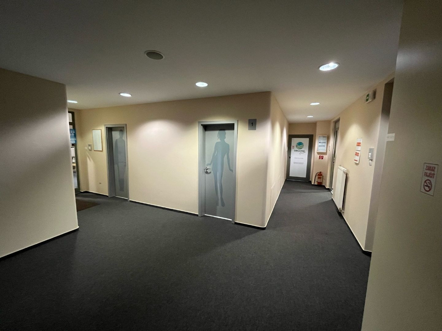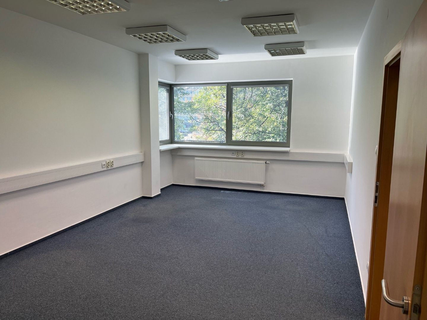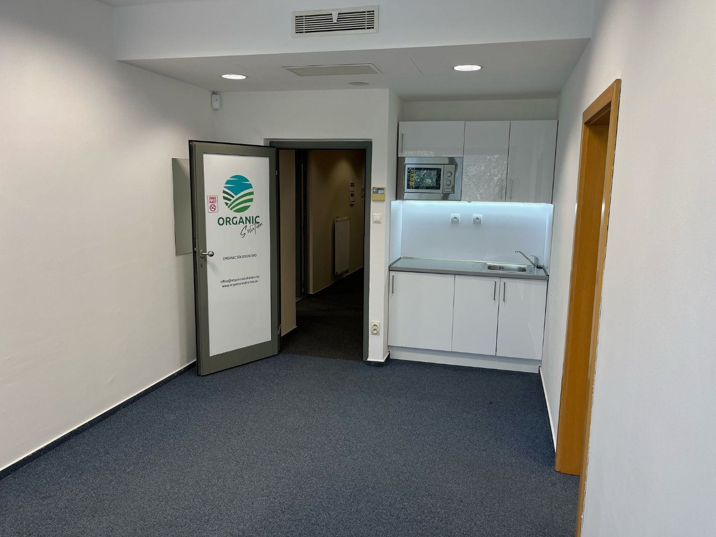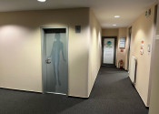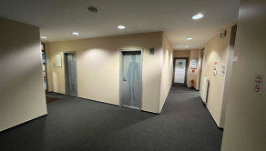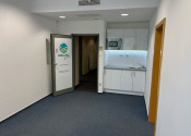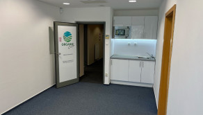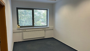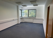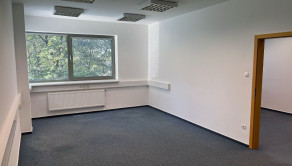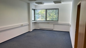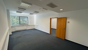 Dispozične pozostávajú z dvoch kancelárii. Jedna z nich má zabudovanú kuchynskú linku. Okná sú otočené do kľudnej zelene. Na podlahách sú koberce. Budova má výťah a prístup je bezbariérový. Priestor je uzamykateľný, dostupný 24/7, vstup do budovy je na čip. Na chodbe sú k dispozícii toalety.