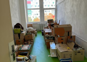 Kancelária 20 m2 s oknami do dvora v štandardnom prevedení,  kuchynka a sociálne zariadenie na chodbe.