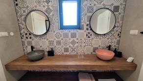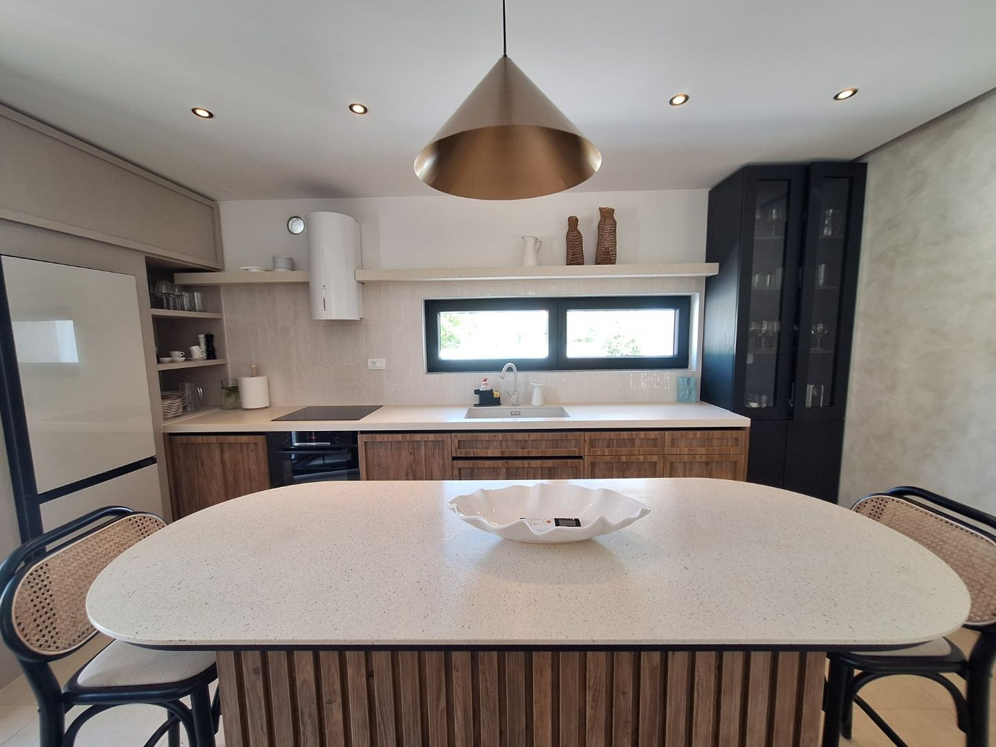 Na prízemí sa nachádza kúpeľňa, skladová miestnosť a priestranná kuchyňa s jedálňou, obývacou izbou a spálňou s priamym vstupom na slnečnú terasu a k bazénu. Na prvé poschodie, ktoré je prístupné vnútorným schodiskom, vedú tri spálne, dve kúpeľne, veľká terasa a dva balkóny.