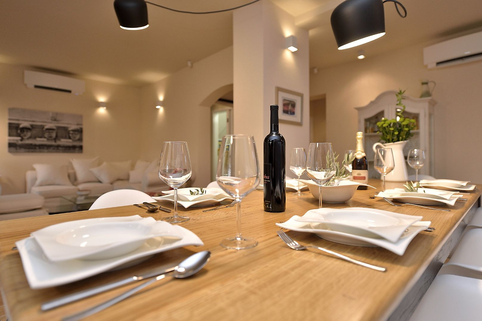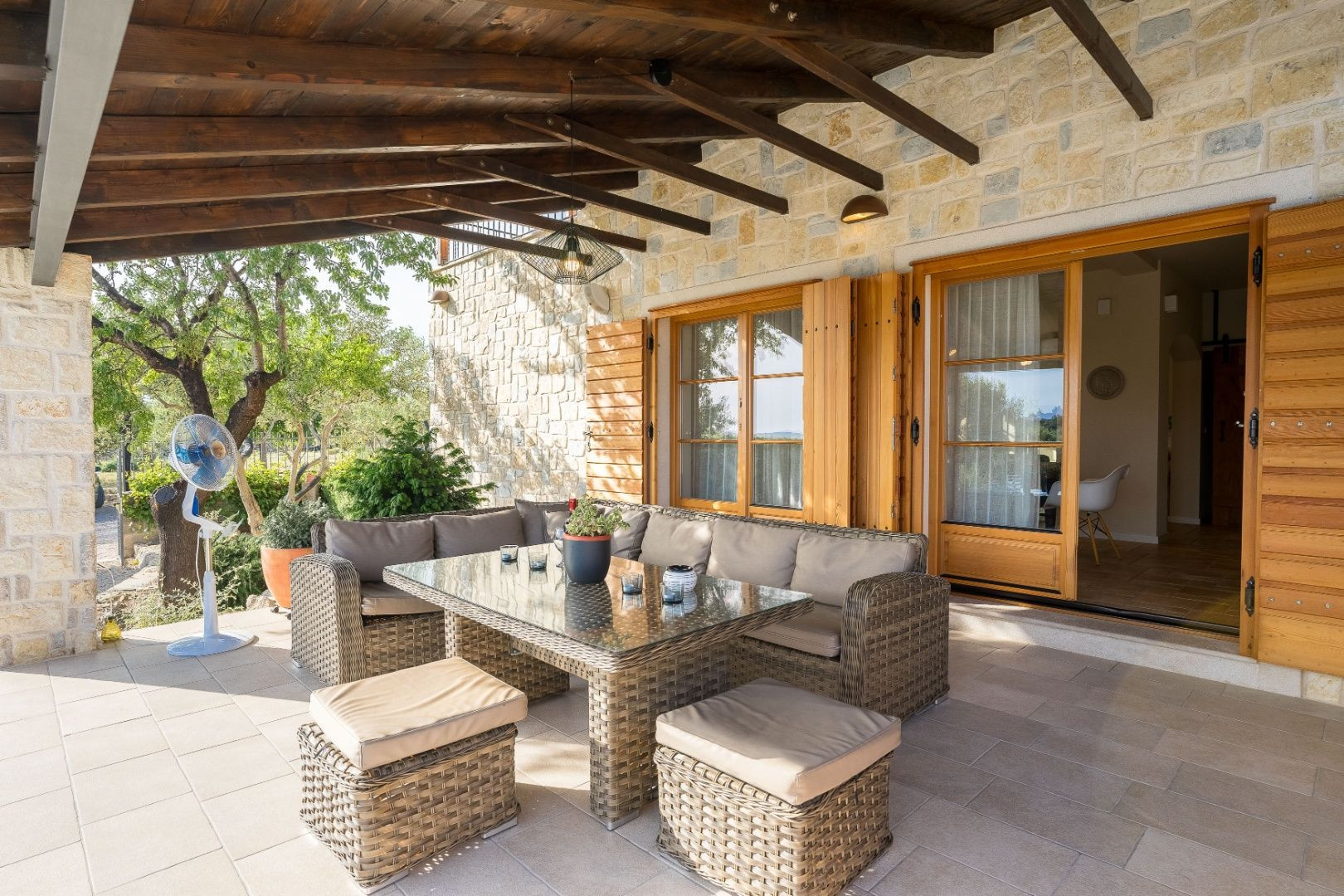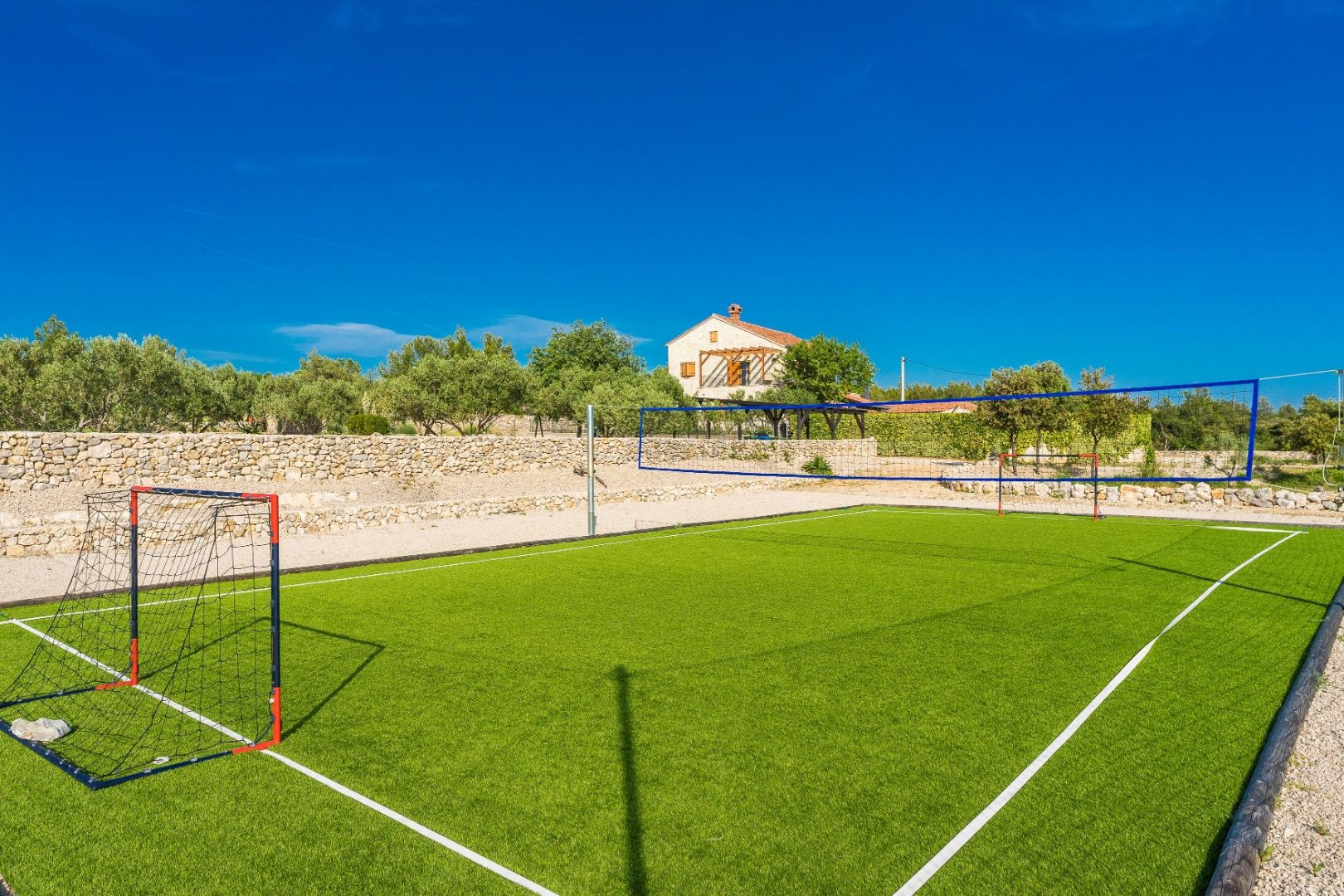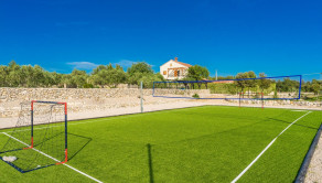 Dom je obklopený upravenou záhradou s typickými stredomorskými rastlinami, ovocnými stromami a olivovníkovým hájom s 30 stromami, čo vytvára pravú stredomorskú atmosféru. Na športové aktivity sú k dispozícii ihrisko s umelým trávnikom na malý futbal, bowlingová dráha a volejbalové ihrisko.