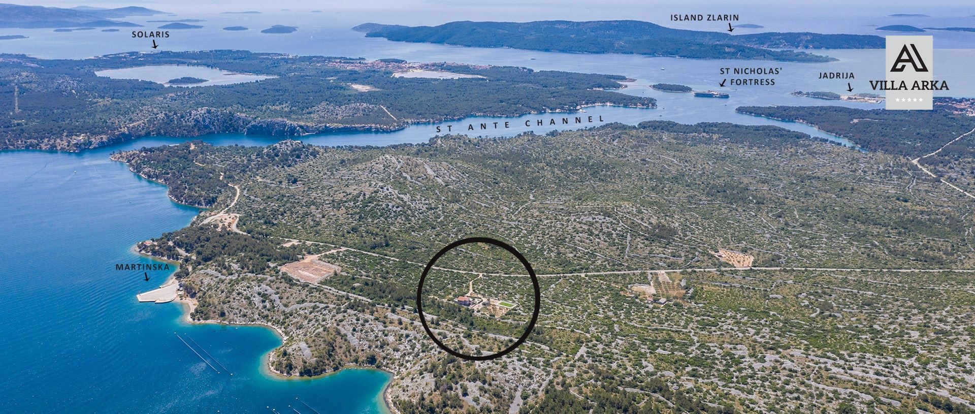 Mesto Šibenik, ktoré je domovom dvoch pamiatok UNESCO, je vzdialené približne 10 minút jazdy autom. Letiská v Zadare a Splite sú dostupné za menej ako hodinu.
