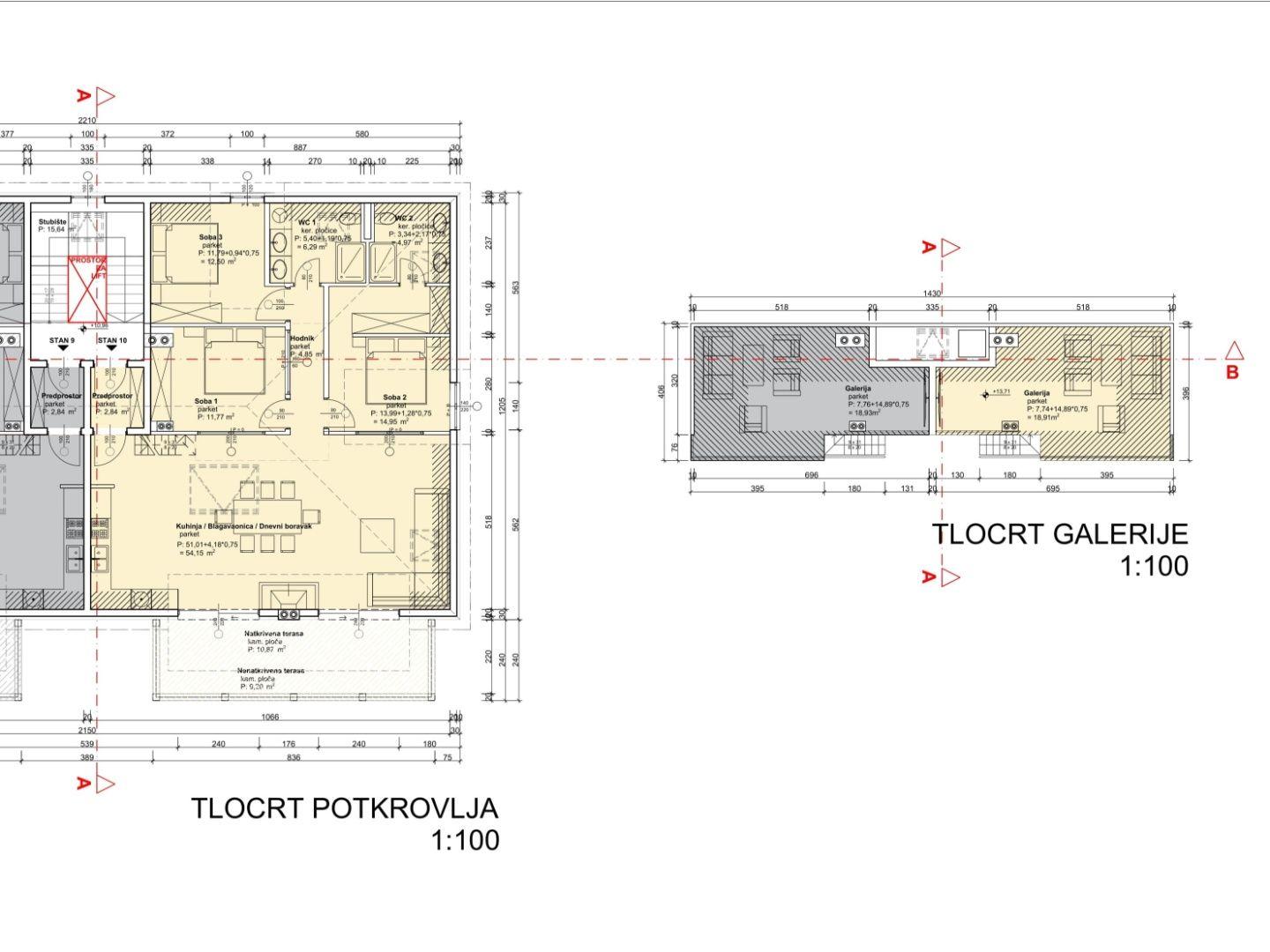Byt S10 sa nachádza na poslednom, treťom poschodí budovy s prídavkom galérie v podkroví. Má rozlohu 138 m² obytného priestoru, so 3 spálňami a 2 kúpeľňami.