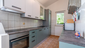 Istria, Valtura: Na predaj samostatne stojaci dom vo Valture, situovaný uprostred zelene, na okraji lesa, iba 1 km od mora. Dom pozostáva z dvoch apartmánov. Apartmán na prízemí má celkovú rozlohu 100 m² a zahŕňa dve spálne, kuchyňu, jedáleň s obývačkou, kúpeľňu, dve komory, chodbu a krytú terasu s rozlohou 15 m². Každá miestnosť má vlastný balkón s rozlohou 2 m². Na prvom poschodí sa nachádza apartmán s rozlohou 50 m², ktorý zahŕňa jednu spálňu, kuchyňu s obývačkou a jedálňou, kúpeľňu, chodbu a nekrytú terasu s rozlohou 15 m² s výhľadom na more. Okná sú z PVC, v izbách je laminátová podlaha, ostatné miestnosti sú pokryté dlažbou. Dom má septik a každý apartmán je vybavený klimatizáciou a olejovou pieckou. K dispozícii je aj pripojenie na optický internet/rýchly internet. Predáva sa kompletne zariadený.