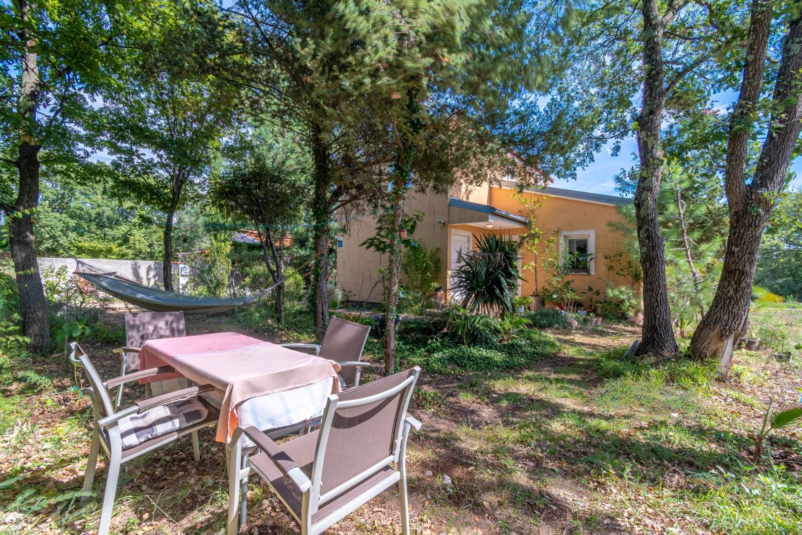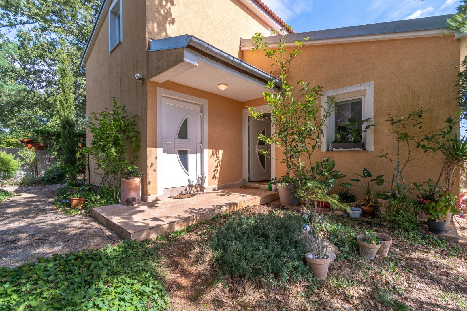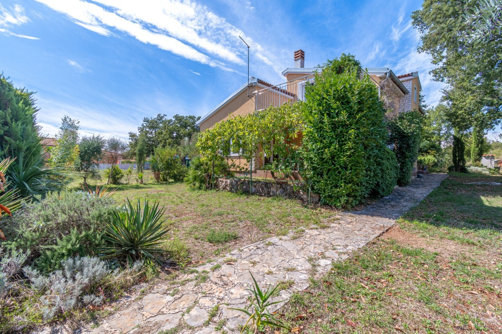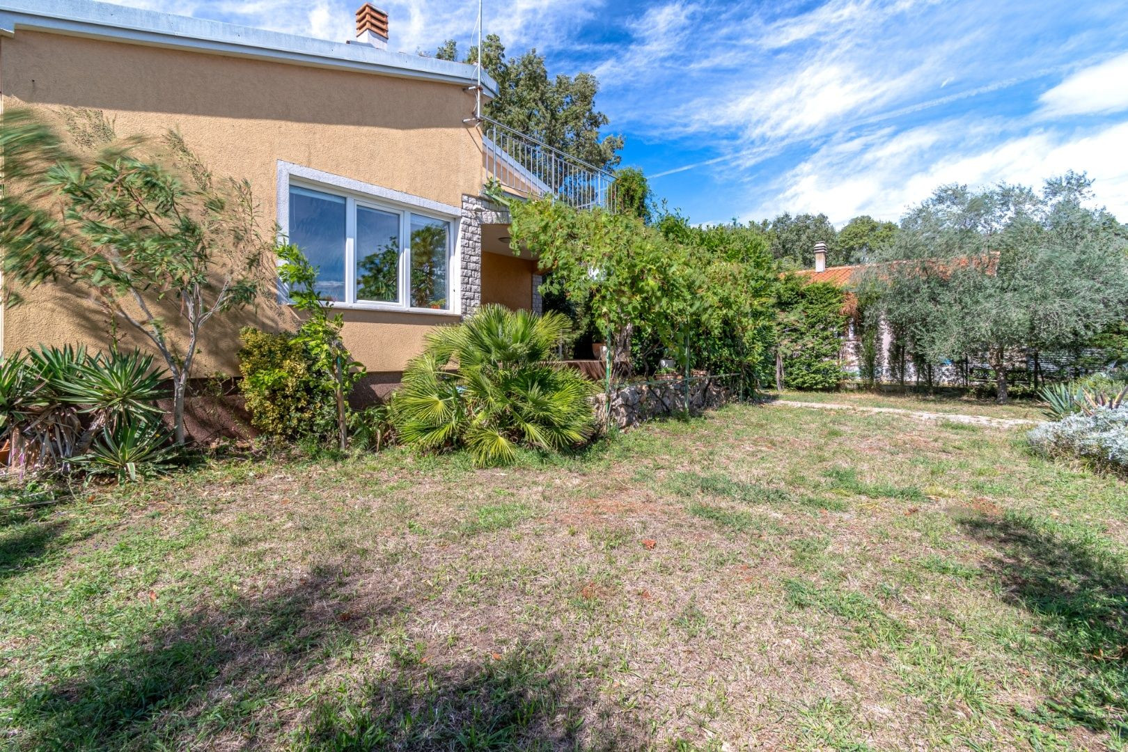 Dvor je upravený, plný zelene a stredomorských rastlín. Nehnuteľnosť je ideálna na turistický prenájom, bývanie alebo kombináciu, keďže apartmány majú samostatné vchody.