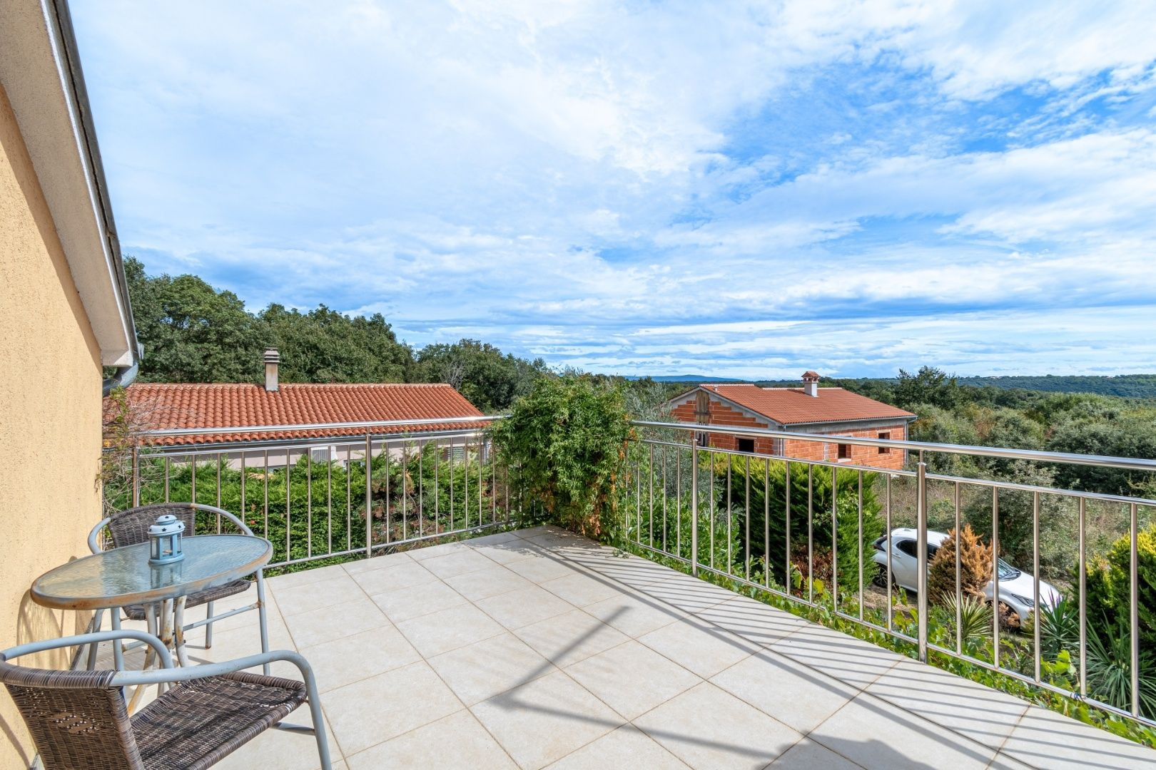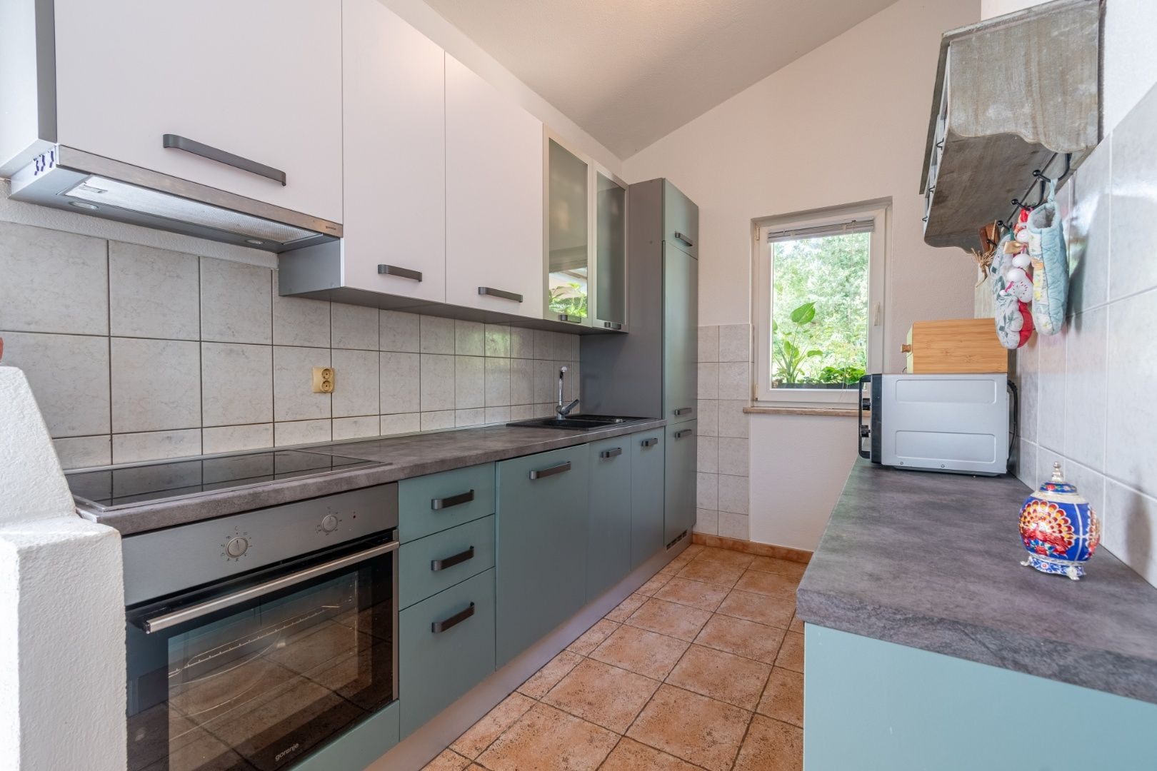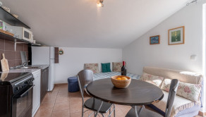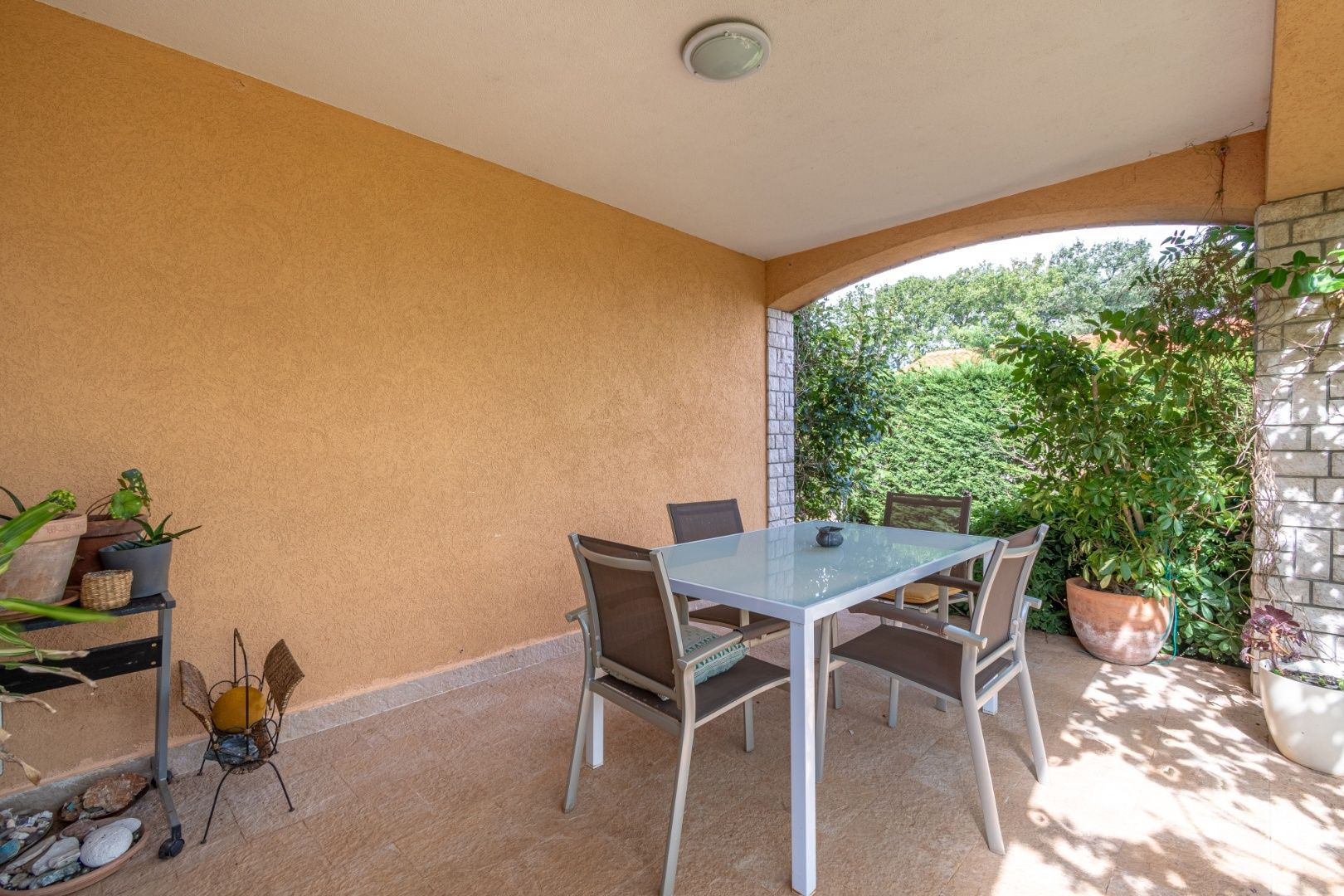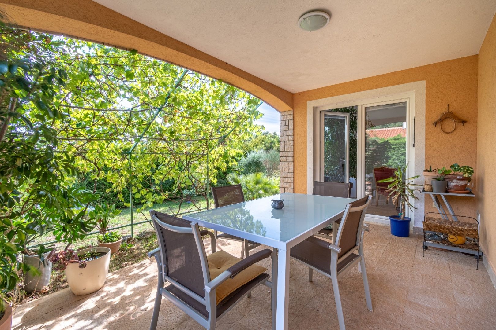 Dvor je upravený, plný zelene a stredomorských rastlín. Nehnuteľnosť je ideálna na turistický prenájom, bývanie alebo kombináciu, keďže apartmány majú samostatné vchody.