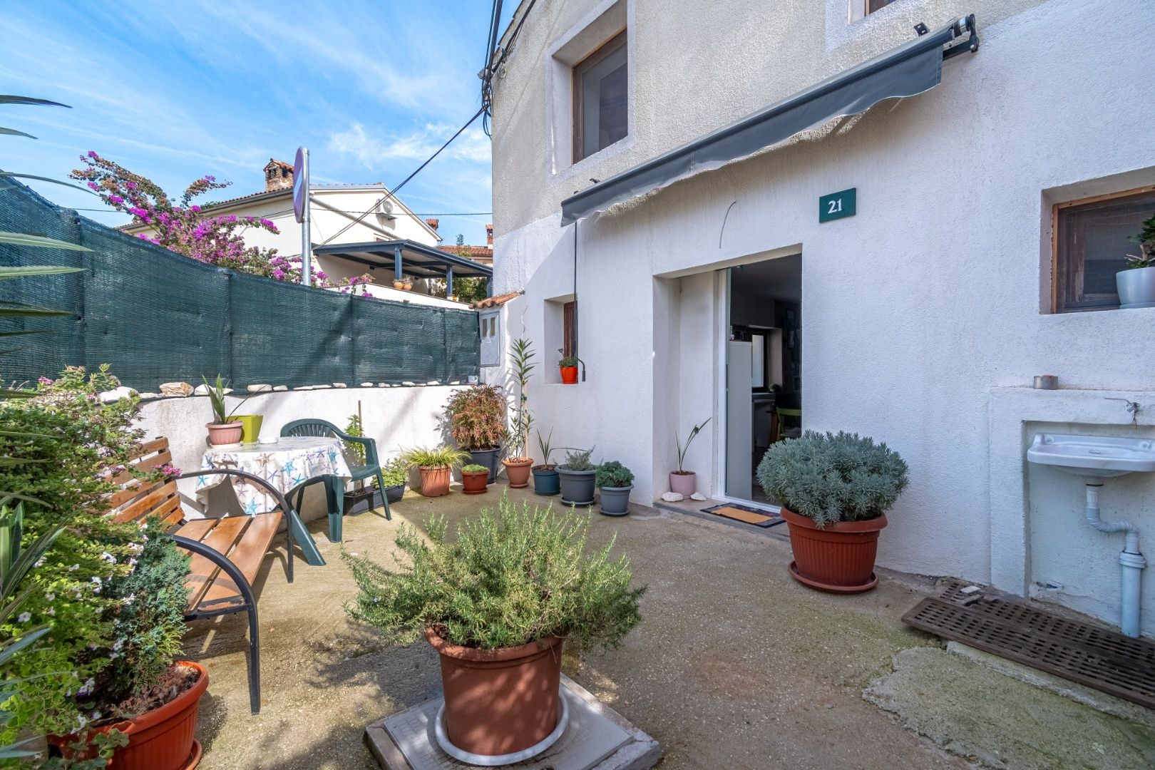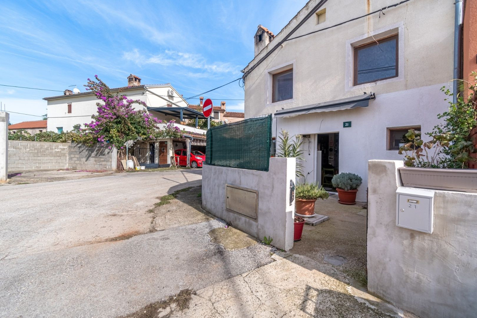 Na predaj radový dom v blízkosti Puly s obytnou plochou 64 m² na dvoch podlažiach. Na prízemí sa nachádza kuchyňa s obývačkou a kúpeľňa, zatiaľ čo na prvom poschodí je otvorená miestnosť. Dom je orientovaný na juhozápad a severozápad, čo zabezpečuje dostatok prirodzeného svetla.