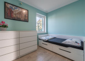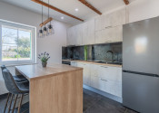 V pokračovaní stavby sa nachádza 30 m² betónová doska – vyznačená, takže budúci majiteľ môže ľahko postaviť napríklad letnú kuchyňu. Kúrenie je zabezpečené prostredníctvom klimatizácie. Dom má platné užívacie povolenie.
