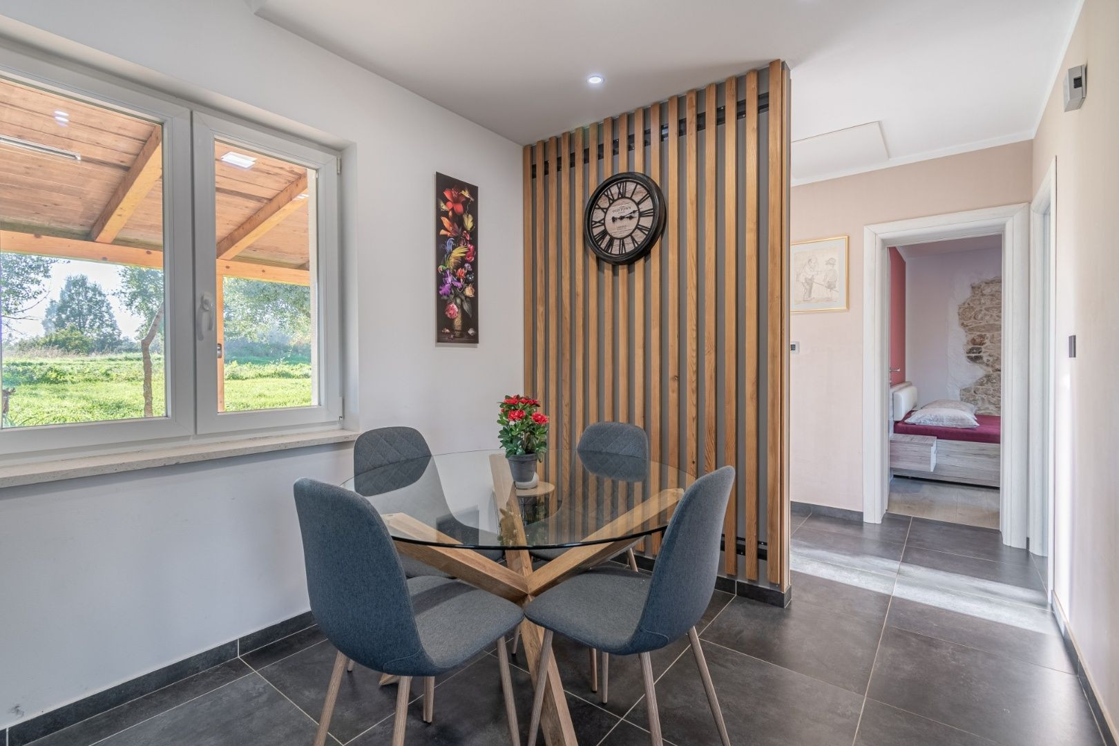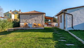 V malej dedinke neďaleko obce Barban je na predaj krásny kamenný dom s čistou obytnou plochou 66 m². Samotná obytná plocha bez terasy je 56 m².