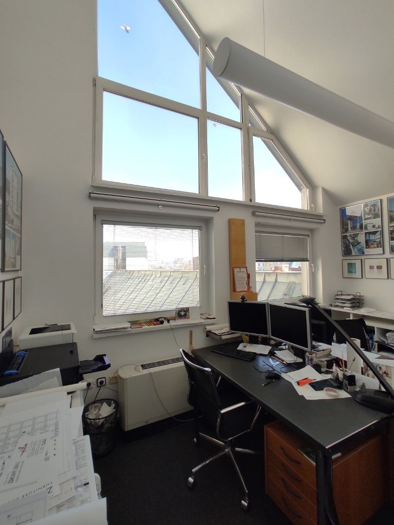 K dispozícii je svetlá 2-kancelária s kuchynkou na 3.p. (aj výťah) o celkovej ploche 70,80m². Sú to reprezentatívne a dizajnové kancelárie, s atypickými oknami.