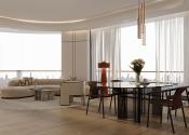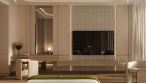 Projekt ponúka výber elegantných štúdií, ako aj jedno-, dvoj- a trojizbových apartmánov, ktoré sú navrhnuté tak, aby vytvárali atmosféru pokoja uprostred rušného mestského života. Interiéry sú starostlivo prepracované s použitím prémiových materiálov, ako je travertínový mramor, drevená dyha a porcelán, čím vytvárajú harmonickú kombináciu textúr. Veľké okná zabezpečujú dostatok prirodzeného svetla a poskytujú panoramatické výhľady na dubajské mrakodrapy. Každá jednotka je vybavená plne zariadenou kuchyňou s kvalitnými spotrebičmi a vstavanými skriňami, čo zaručuje funkčnosť a estetickú príťažlivosť. Dispozícia maximalizuje komfort, spájajúc súkromné a otvorené priestory s elegantnými povrchovými úpravami pre sofistikovaný zážitok z bývania.