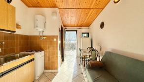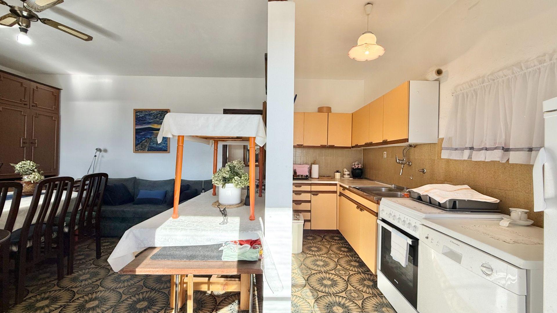Prízemie tvorí samostatný byt, ktorý pozostáva z dvoch spální, priestrannej kuchyne spojenej s obývacou izbou, kúpeľne a komory. Byt má vlastný vchod z východnej strany a ponúka nádherný, nezastavaný výhľad na more. Pod terasou bytu sa nachádza dodatočný skladový priestor – pivnica. Navyše, prízemný byt má k dispozícii vonkajšiu sprchu, čo je ideálne riešenie počas horúcich letných dní.