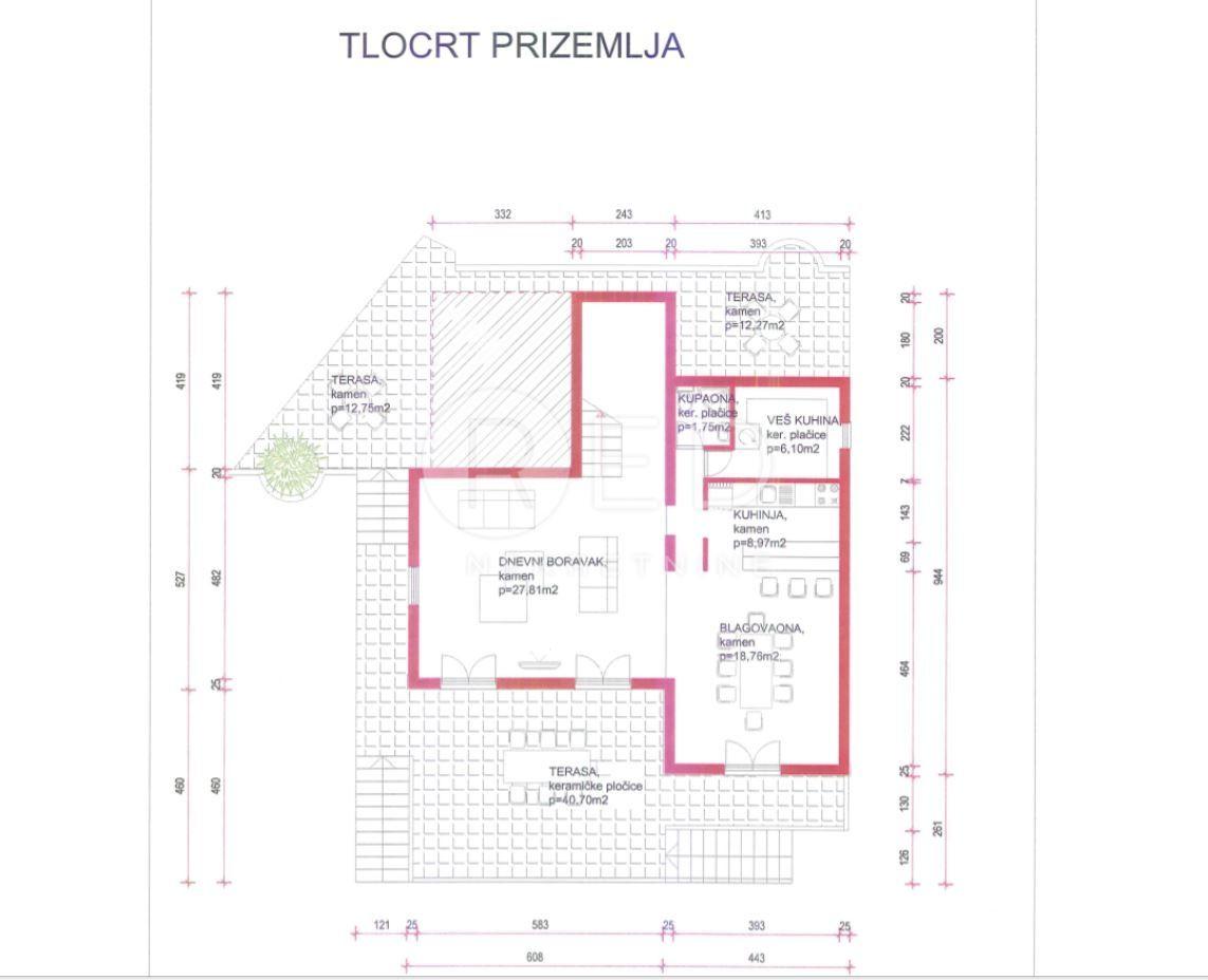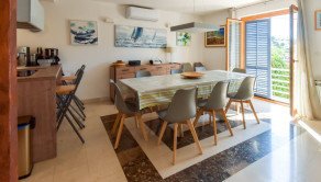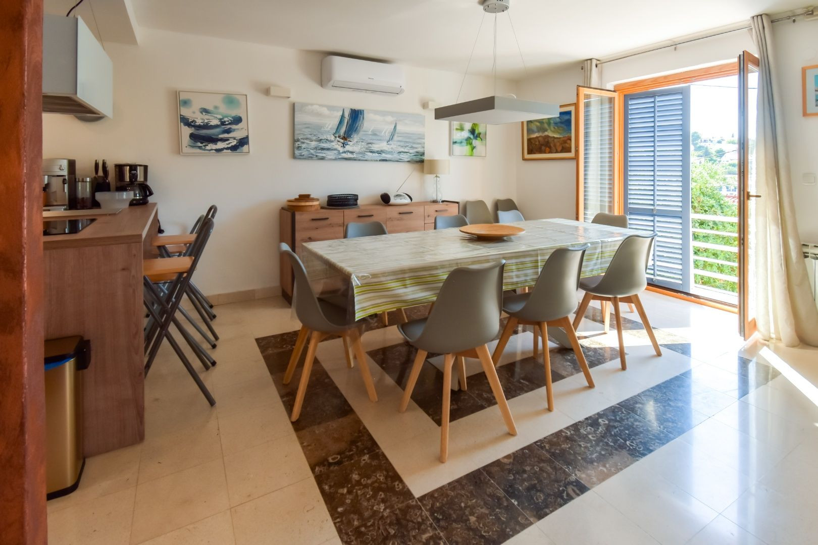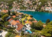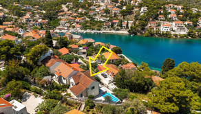 Najväčšou výhodou tejto nehnuteľnosti je jej poloha. Dom sa nachádza v druhej línii od mora na svahovitom teréne, vďaka čomu ponúka spektakulárny výhľad na more a záliv.