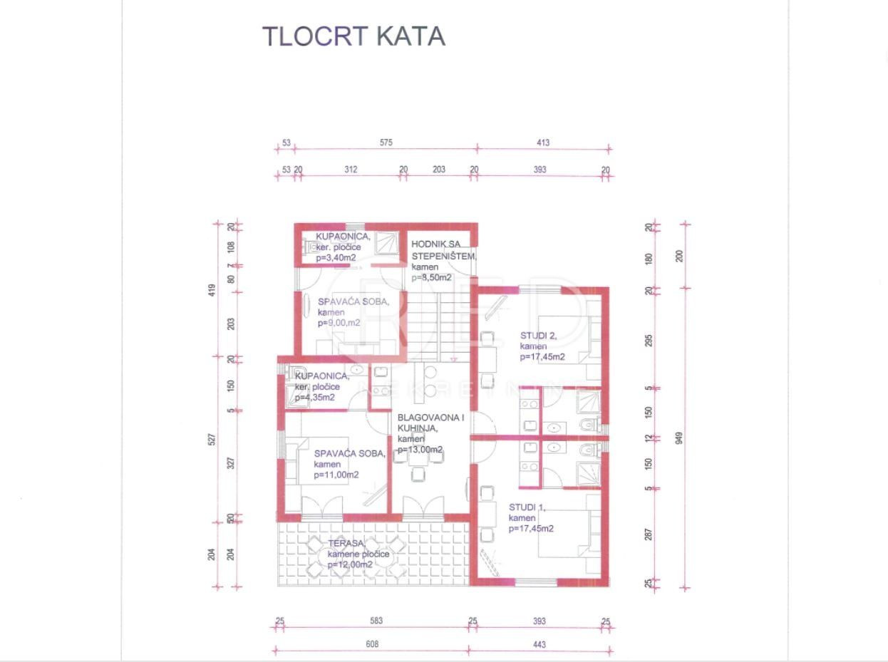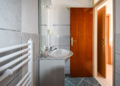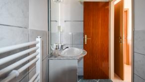Z obývacej izby vedú kamenné schody na medziposchodie, kde sa nachádza spálňa s vlastnou kúpeľňou a toaletou, ako aj prístup na terasu. Medziposchodie má aj samostatný východ na terasu v zadnej časti domu.