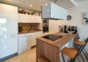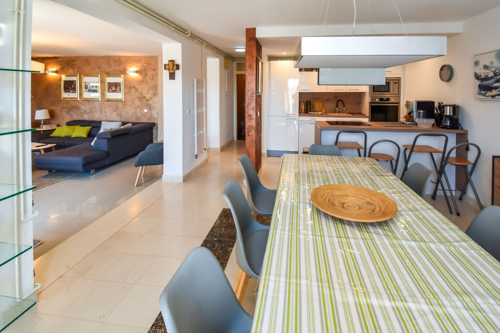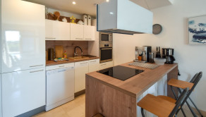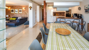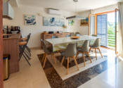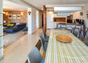 Prízemie ponúka veľký otvorený priestor s kuchyňou, jedálňou a obývacou izbou. Okrem toho sa tu nachádza samostatná miestnosť slúžiaca ako sklad a toaleta s práčkou. Obývacia časť vedie na priestrannú terasu s výhľadom na more, ideálnu na vonkajšie stolovanie.