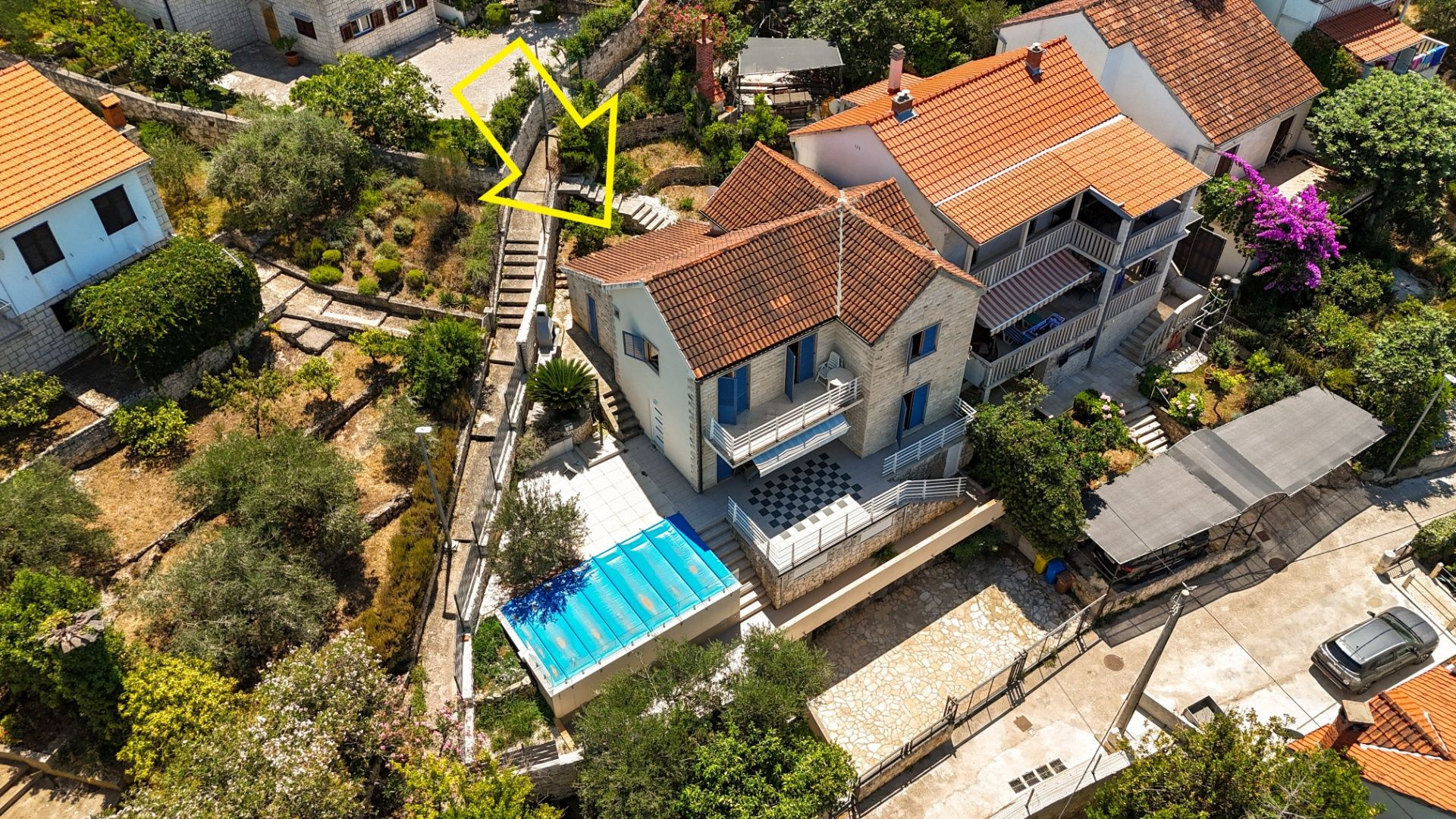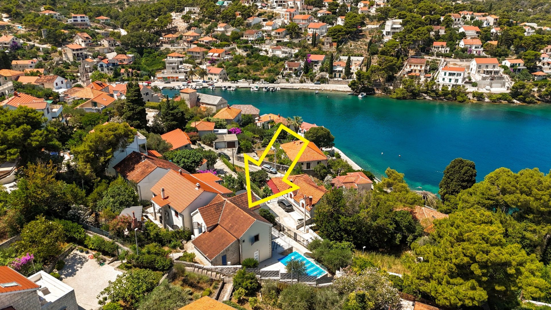V srdci malej dedinky Splitska na ostrove Brač sa nachádza tento krásny, priestranný dom s magickým výhľadom na záliv.