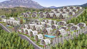 Vily na predaj v Alanyi, Antalya, sa nachádzajú 3,5 km od zdravotného strediska, 3,5 km od mora a pláže, 8 km od centra Mahmutlaru a 20 km od letiska Gazipaşa.