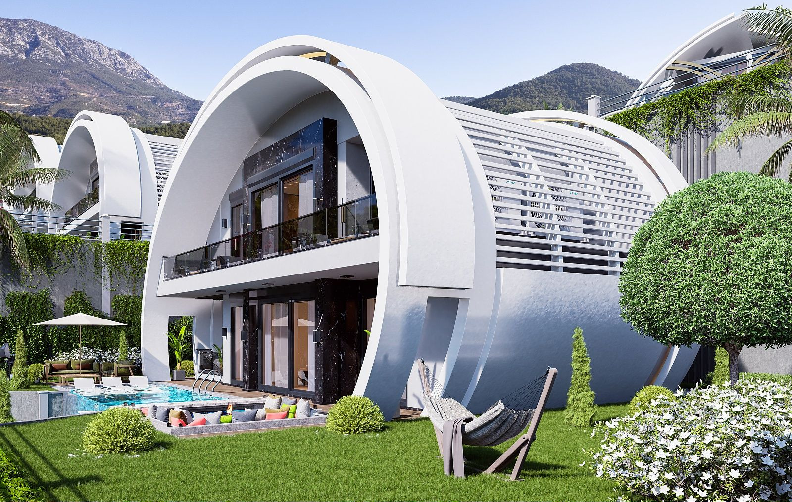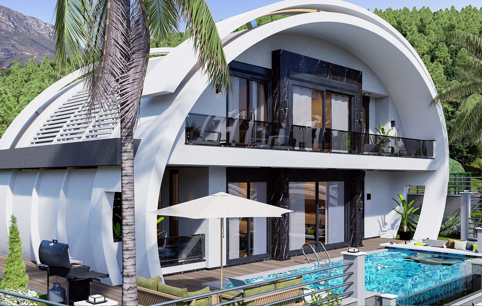Vily navrhnuté s vysokými stropmi ponúkajú širokú škálu vybavenia. Budete si môcť vychutnávať všetky tieto aktivity. Každá vila má svoj vlastný nekonečný bazén, súkromnú záhradu, grilovaciu zónu a kryté parkovacie miesto pre jedno vozidlo. Všetky detaily sú realizované s dôrazom na kvalitu spracovania. V komplexe budú k dispozícii aj ďalšie služby, ako napríklad denné spojenie do centra mesta a golfové vozíky na presun v areáli.