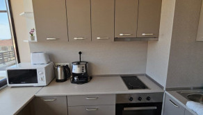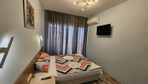 Ponúkame vám kompletne zariadený trojizbový apartmán, ktorý sa nachádza v modernom komplexe s výbornou polohou. Dispozícia bytu: priestranná obývačka s kuchynským kútom, dve útulné spálne, dve terasy – jedna orientovaná na juh, druhá na sever – s úchvatným výhľadom na more a množstvom prirodzeného svetla počas celého dňa.