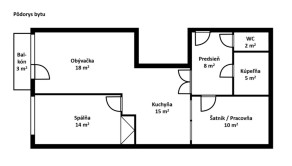 Vnútorná výmera bytu je 72 m2 + 3 m2 má balkón. Byt má veľmi nízke prevádzkové náklady, približne 100 EUR mesačne na 2 osoby vrátane všetkých energií a fondu opráv.