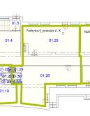 Obchodný priestor o celkovej ploche 125,9m2 sa nachádza na zníženom prízemí (prístup po schodoch) a delí sa na hlavnú predajnú časť (open-space s výkladmi + sociálne zariadenie) a skladovú časť. Priestor disponuje výkladmi orientovanými na Záhradnícku ulicu a je vhodný na rôzne typy prevádzok.