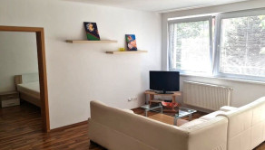 Byt je kompletne zariadený vrátane spotrebičov v kuchyni, TV, internet, sedačka, jedálenský stôl, práčka, vstavané skrine, posteľ, matrace a rošty.