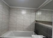 Kúpeľňa je spojená s WC, vaňa, práčka, úložný priestor
