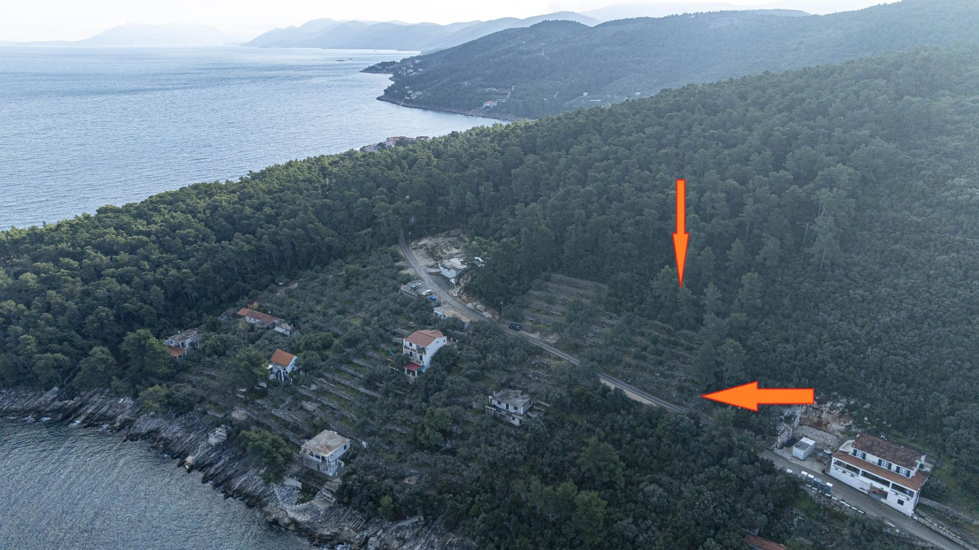 Na predaj je stavebný pozemok s výmerou 934 m², ku ktorému prislúcha aj lesný pozemok o rozlohe 2 656 m². Pozemok sa nachádza v druhom rade od mora a ponúka úchvatné výhľady na more a okolitú prírodu. Je situovaný pri prístupovej ceste a má kompletnú infraštruktúru, čo umožňuje jednoduchú výstavbu.