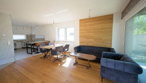 - Kúrenie: Teplovodné podlahové kúrenie v celom dome (aj v zimnej záhrade)