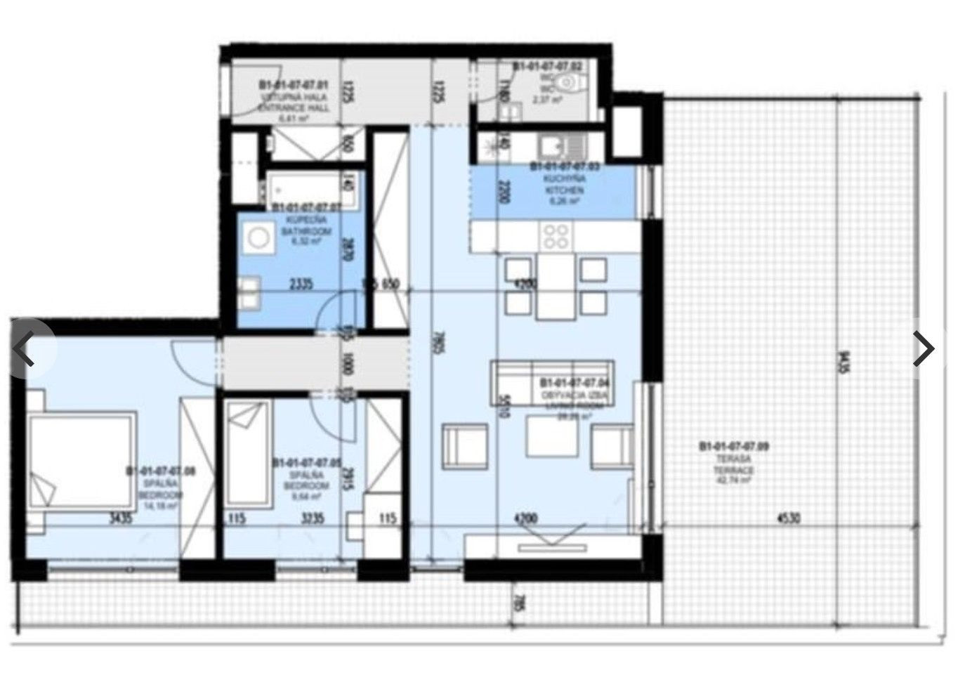 Interiér bytu: 79,77 m²
