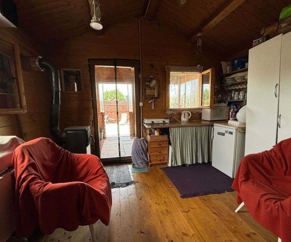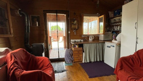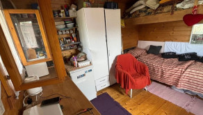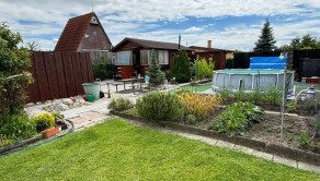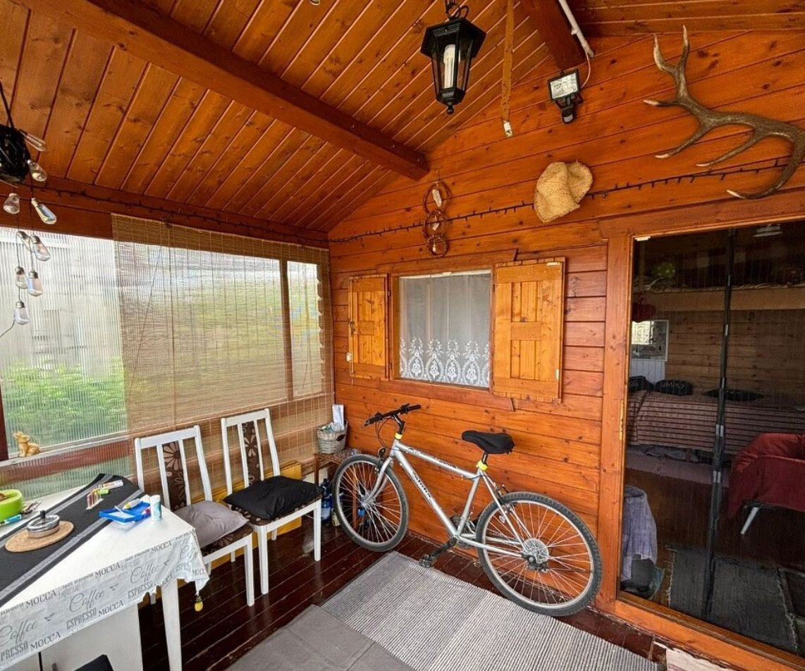 Na záhrade sa nachádza kvalitná Oravská drevenica (chata) s terasou, ktorá je obývateľná celoročne. Chatka je udržiavaná, každý rok/2 sa celá natiera. Na záhrade je elektrika aj vŕtaná studňa. Taktiež úložný priestor pre náradie a suché WC.