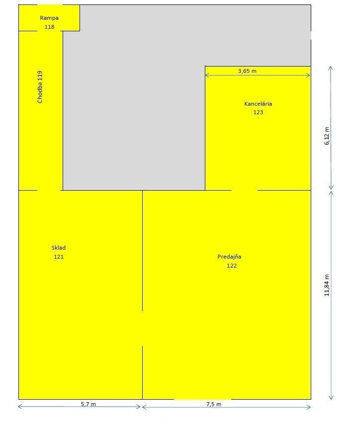 Priestory majú vstup priamo z ulice, veľké presklené výklady a bočný prístup pre zásobovanie cez nakladaciu rampu.