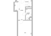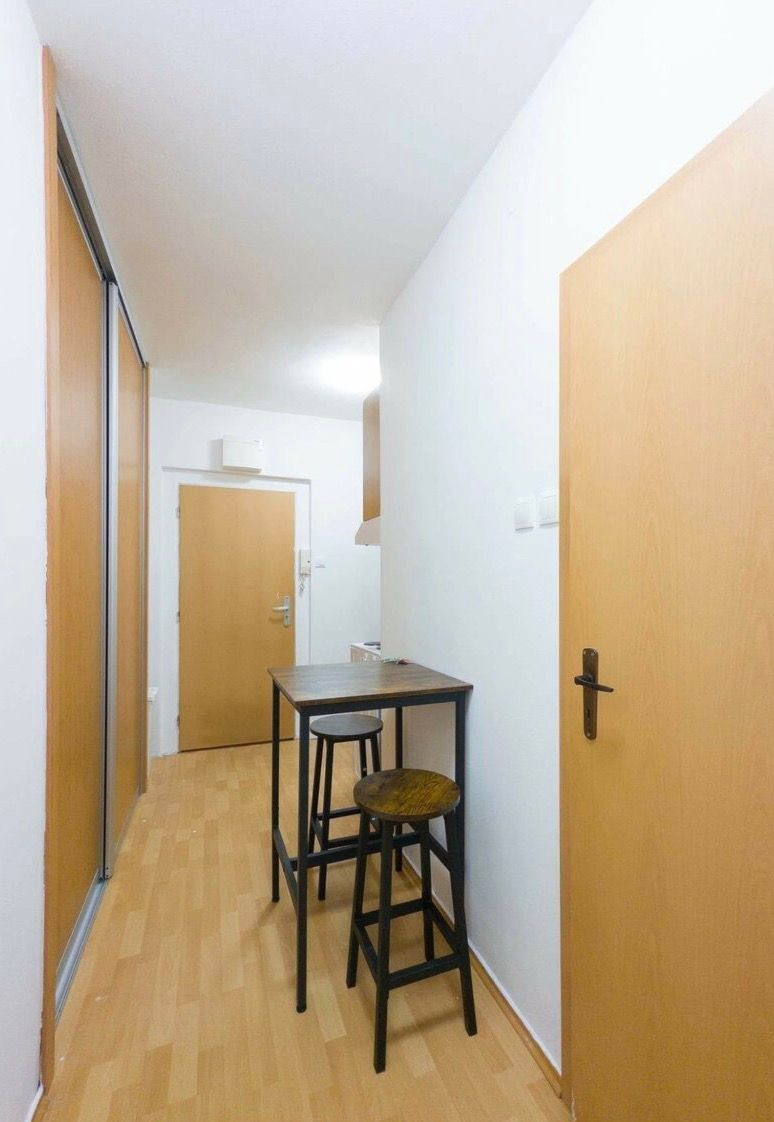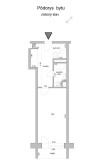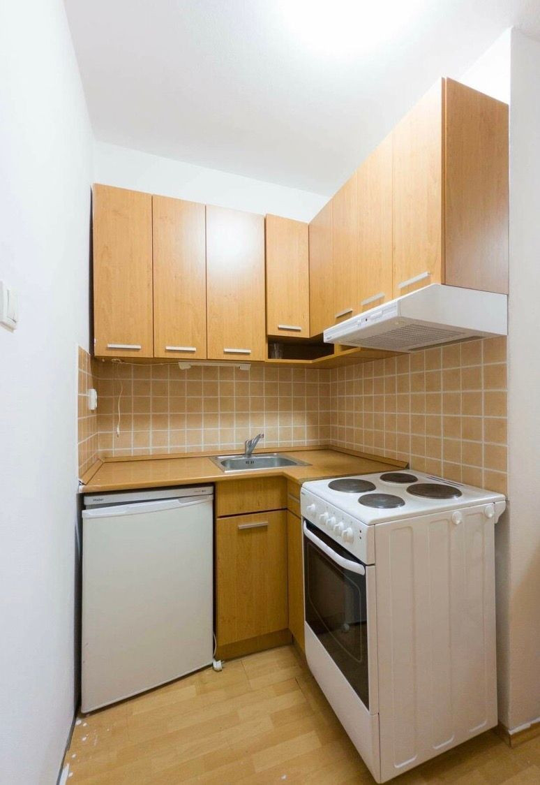 Byt má 30 m2 a kuchyňa je oddelená od spiacej časti.